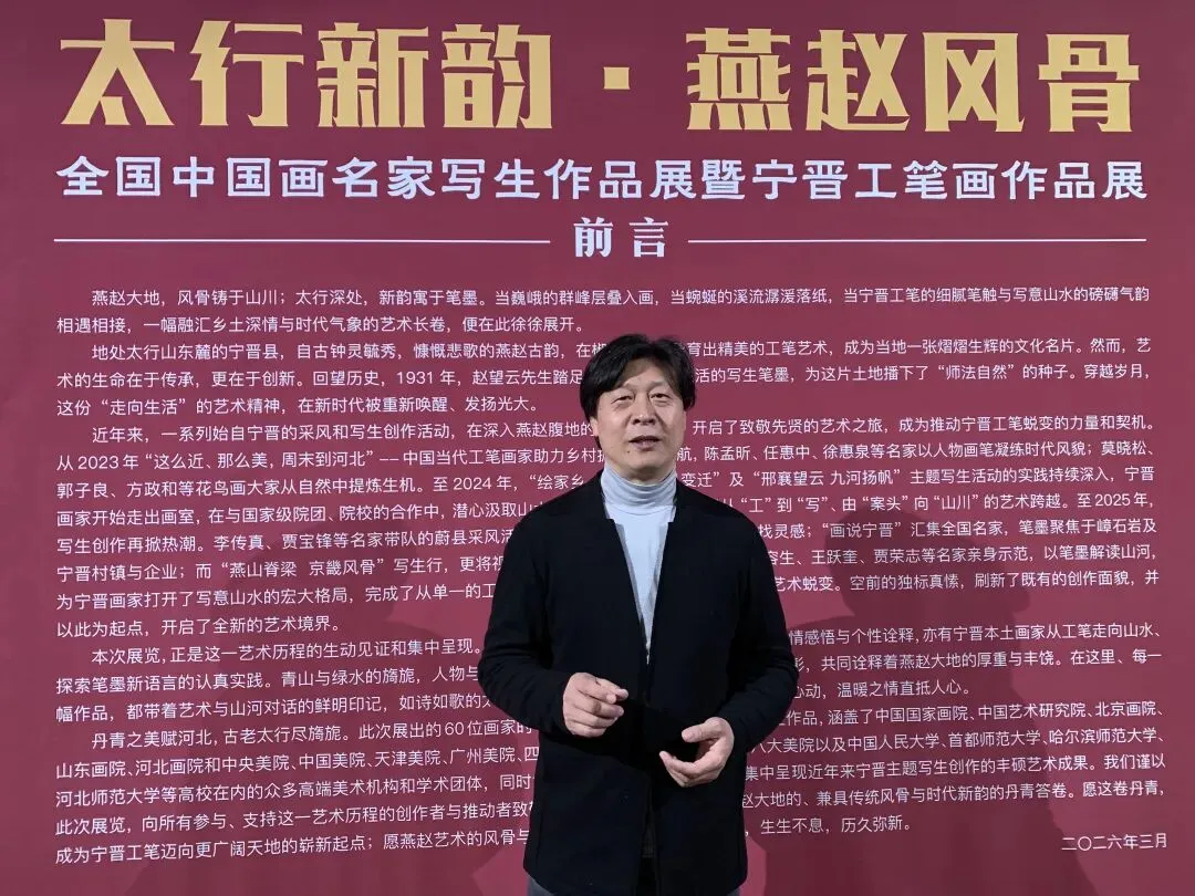 张厅长,祁主席,各位领导、各位同仁大家好:首先受陈孟昕会长委托,代表学会参加此次活动,并向展览的成功举办及活动的顺利开展表示热烈的祝贺。来到河北美术馆参观过展览,从策展理念、展陈效果、观展体验都非常好,是一个很高质量的学术研究展,更是带给社会的一场艺术盛飨。不久之后,由首都师范大学美术学院策划的“主题性与艺术性——钟涵美术教育理念及其‘油画研修班现象’研究”巡展也会在此亮相,欢迎各位领导和同仁莅临指导。 作为一名致力于工笔画创作的实践者,我曾多次走进宁晋。与本土画家的深入交流和对创作生态的系统考察,再次看过展览,我对宁晋工笔画的发展有了更多思考。