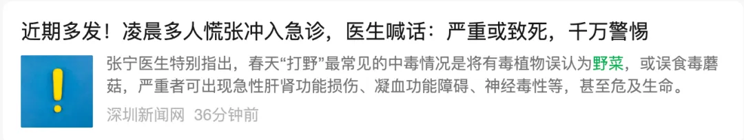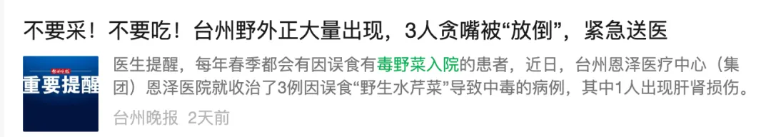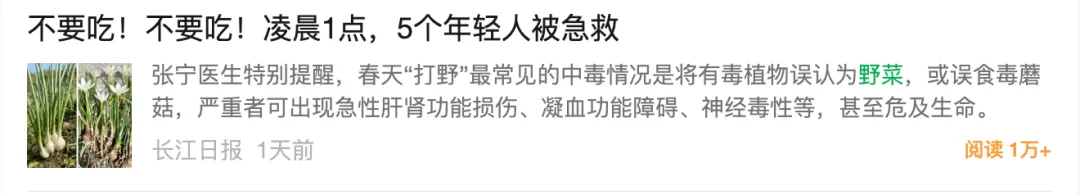 吃野菜、野菌中毒的新闻