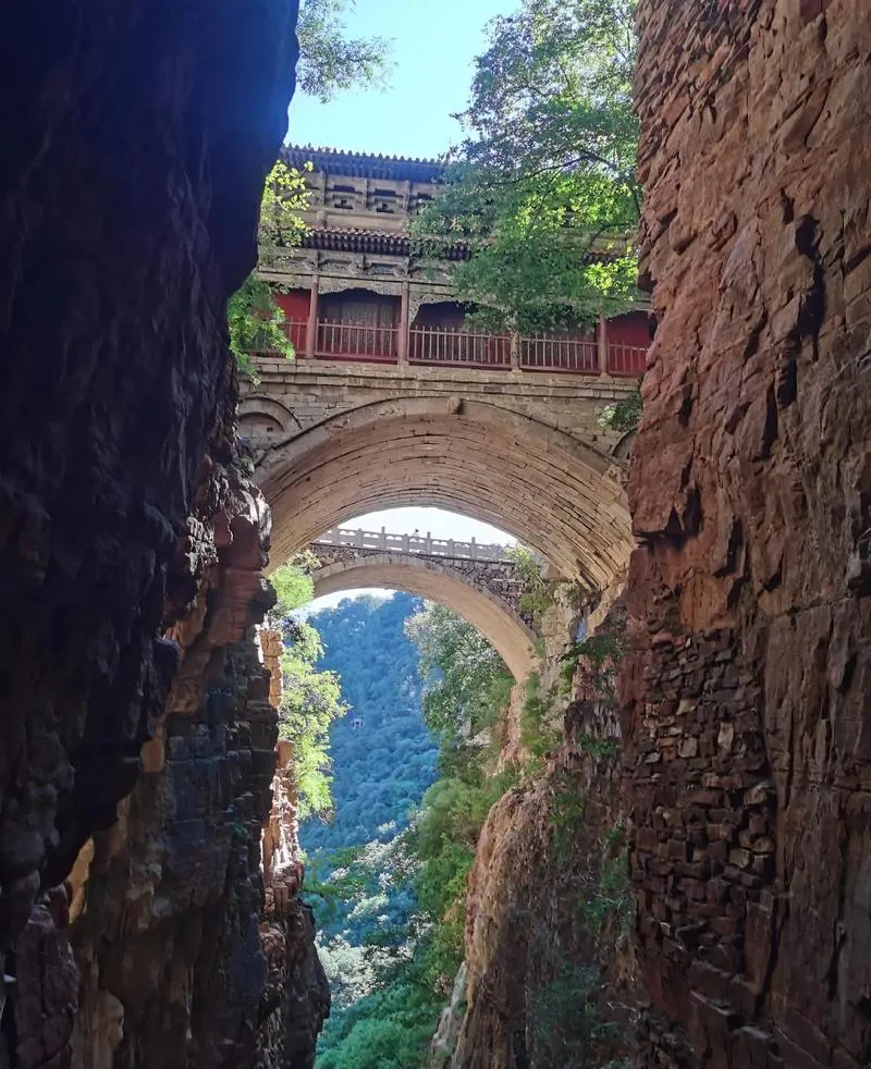 苍岩山的好处还在于它开发得不彻底,没有缆车、没有电梯、没有过度的商业化,你想看桥楼殿,就得自己一步一步爬上去,台阶是石头凿的,很多地方还是明清时期留下来的原貌,爬到半山腰会有个小庙,里面有个老道士,卖点香火和茶水,不宰客,价格很实在,你坐在那喝口茶,往山下一看,太行山的褶皱一层一层铺开,春天的时候山上野花开得到处都是,那种清凉不是空调给的,是山风带着草木气息吹过来的,你会突然明白,为什么古人把山当神仙住的地方,因为山本身就有一种让人安静下来的力量。