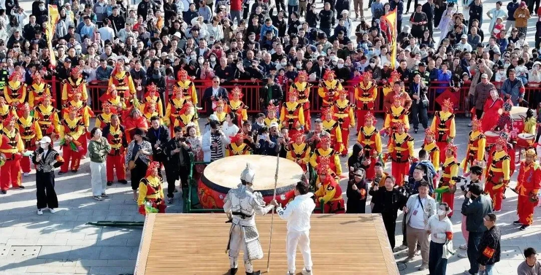 最具互动性的是“擂鼓震常山·我是赵子龙”常山战鼓沉浸式互动体验活动,在非遗代表性传承人指导下,游客快速学习鼓点,与演员一同擂鼓布阵、击鼓退敌。百人合鼓的震撼场面搭配实景演艺与环绕音效,让游客从“观赏者”变为“参与者”。带着孩子参与活动的李先生说:“鼓声越响越有成就感,这种体验很特别。”