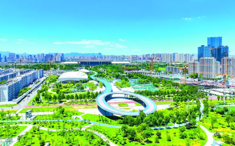 建设总占地面积435亩的中央绿色体育公园,配套多功能运动馆、室内网球馆等4个室内场馆,以及足球场、网球场等多种专业运动场地,打造全年龄段可参与的大型开放式运动主题生态公园,同时建设长1070米的如意彩虹空中走廊,串联公园各功能分区,成为区域标志性景观。