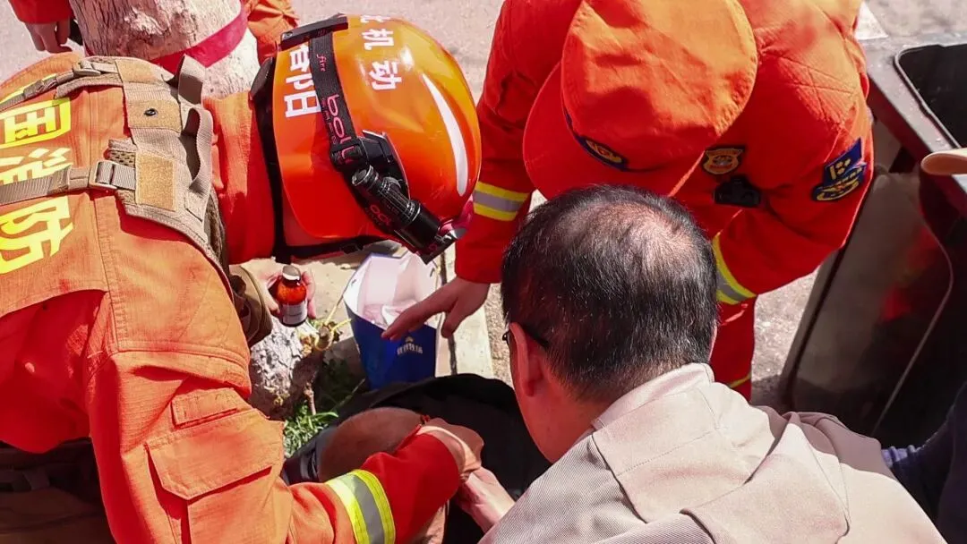 此时,一名群众神色慌张地向执勤点位紧急求助,称其父亲在游览途中突发晕厥摔倒,情况危急。正在现场值守的大队政治委员张宇闻讯后,立即带领卫生员携带急救包、止血敷料等专业急救器材快速赶赴事发地点。
