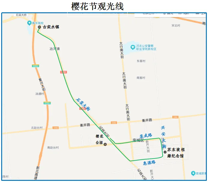 随着栾城樱花节的到来,为方便市民观花、赏花,助力樱花节举办圆满成功,公交集团在樱花节期间临时开通栾城区域内古栾水镇至樱花节的观光线路,具体方案通知如下: