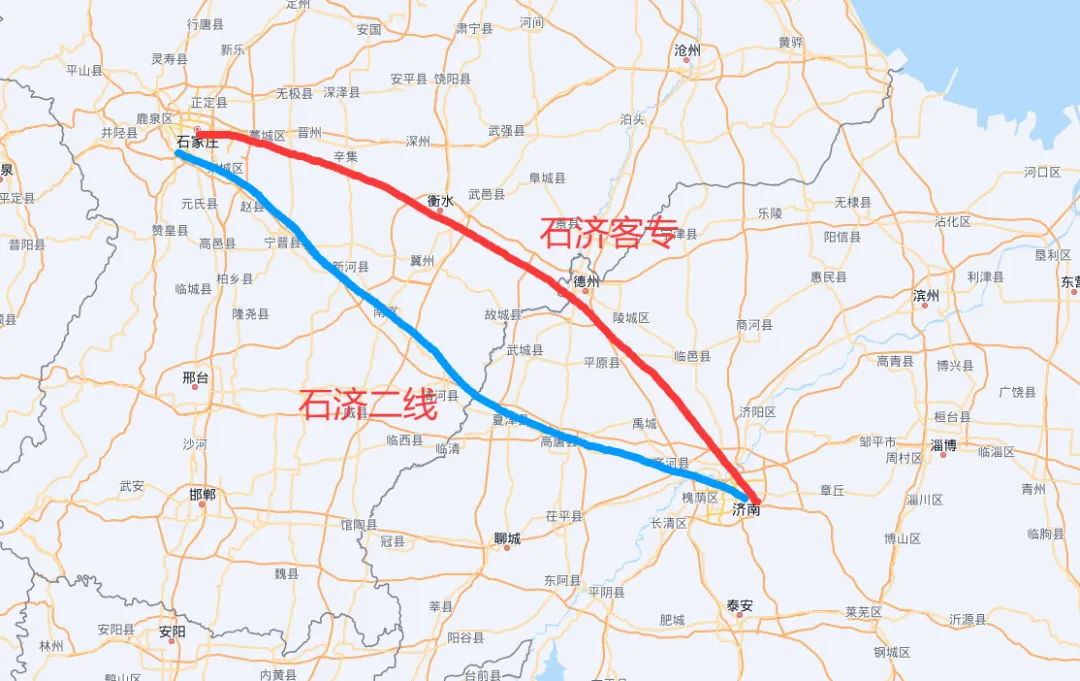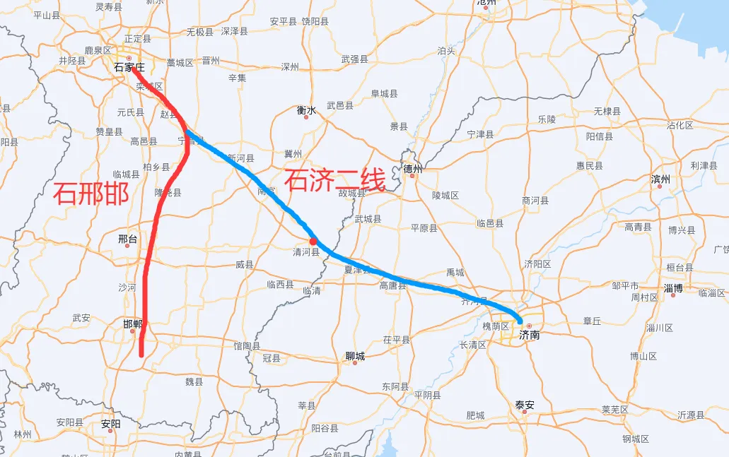 随着京津冀城市群的发展,以及石家庄都市圈的确立,石家庄作为冀中南核心城市,围绕石家庄的道路交通工程越来越多,特别是东部,像石雄城际,石横沧港,石邢邯等等,都正在建设以及规划。在这些线路建成后,有一条高铁线路,也逐步显现出来,未来很可能建设,而且意义重大,就是石济二线。河北省会石家庄与山东省会济南之间,是一望无际的华北平原,但是石济高铁最高时速却仅有250公里。石太高铁由于经过的是太行山区,高铁速度比较低,但是平原地区,高铁时速也这么低,有点说不过去了。严重制约了两地之间的时间成本,进而影响西部与东部沿海区域的交流成本。其实目前的石济高铁,走的是北线,从石家庄到衡水,到德州,到济南。其实还有一条南线,就是从石家庄沿着青银高速一直到济南,这条线路未来也会逐步提上日程,时速达到350公里,石家庄和济南之间,半小时就能到达。石家庄到济南高铁,沿着青银高速线路,走南线,还是比较笔直的一条。唯一的缺点,就是之间没有地级市,甚至没有一座大型点的城市,全是小县城。从石家庄开始,沿线有栾城,赵县,宁晋,新河,南宫,清河,夏津,高唐,齐河,到达济南市。导致这条线路客流量不能保证。如果仅仅为石家庄和济南修一条城际铁路,目前还不值得,因为这两座城市,也没有京津这样的体量以及人口基数。但是随着石邢邯的规划,这条线路建设的几率越来越大。石邢邯已经列入十五五规划了,是一条石家庄都市圈的城际铁路。从石家庄到宁晋,到邢台,到邯郸。这条路线有一段就是石济南线,即石家庄到宁晋这一段。未来石邢邯城际建成后,只需建设宁晋到清河,清河到济南,就能组成石济高铁二线了。这条石济二线的建成,首先就是使得石家庄到济南之间,又增加了一条高铁通道,而且肯定采取速度更高的规划,石家庄到济南之间,时间短,两地人民来往更加密切。而且对于沿线各区域的交通带来便利。大家如果看下地图,这条线路沿线,县城众多,民营经济繁荣,但是交通不便。石济二线恰好弥补。再次,这条线路的规划,不单单是石家庄到济南的第二通道,在此基础上,还可以规划,石家庄到聊城,到徐州,到上海的通道。这条线路会成为石家庄到长三角的最近路线。