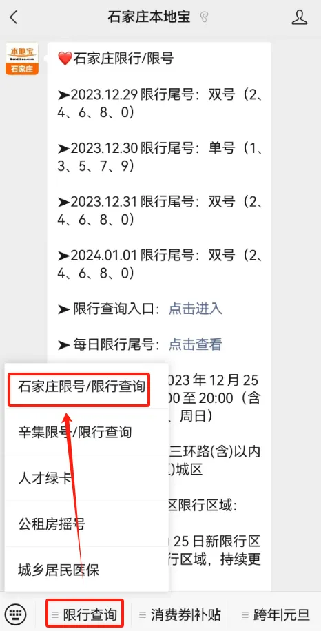 推荐服务:点击下方名片关注【石家庄本地宝】,在首页菜单栏点击【石家庄限行/限号查询】,即可获取限行尾号查询入口