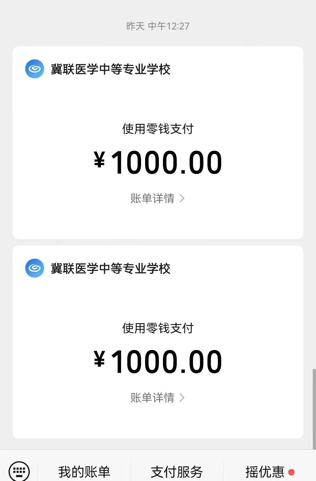 先预交1000元的学杂费