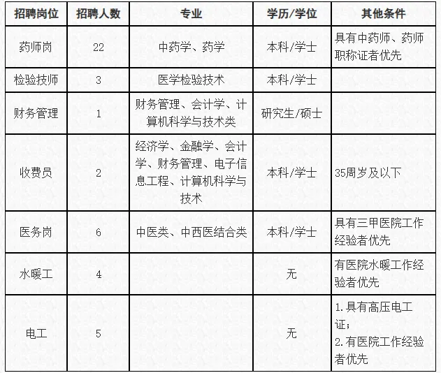招聘岗位:医技25名