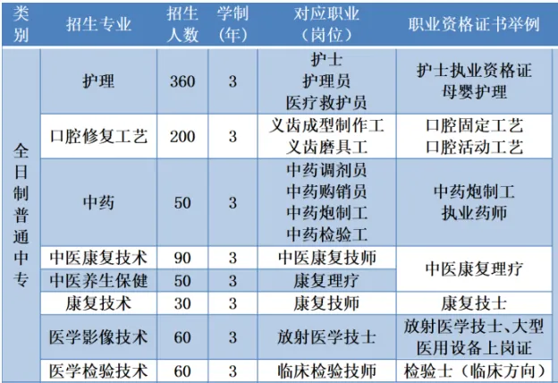 学校开设了护理、口腔修复工艺、中药、中医康复技术、康复技术、医学影像技术、医学检验技术等多个医学相关专业,涵盖了医学领域的多个方面,满足了社会对不同医学人才的需求。