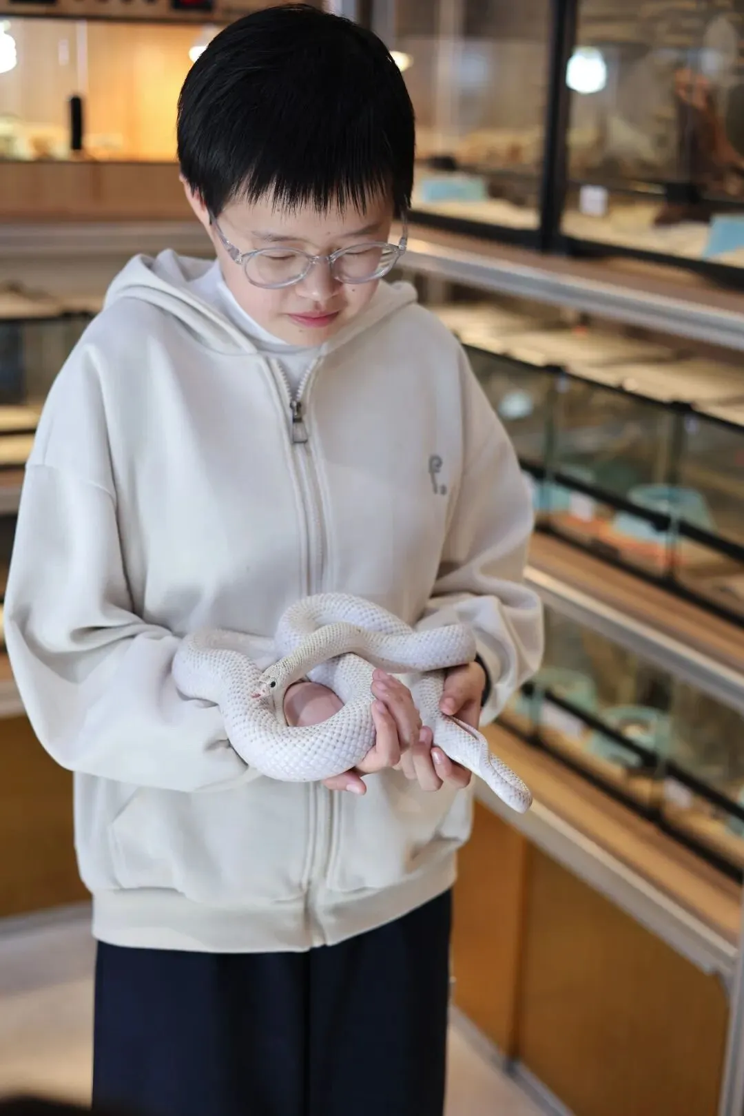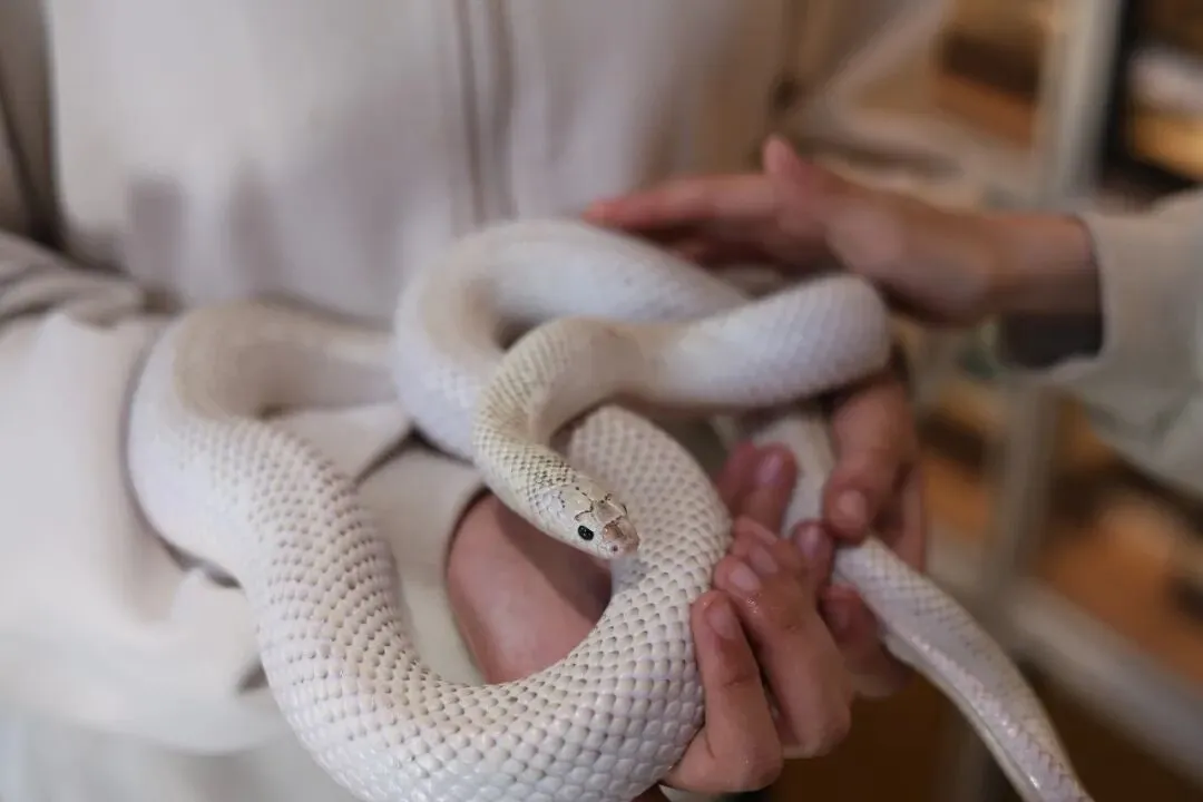 选了一条小白蛇,叫作布鲁克王蛇。20块钱,10分钟亲密接触。