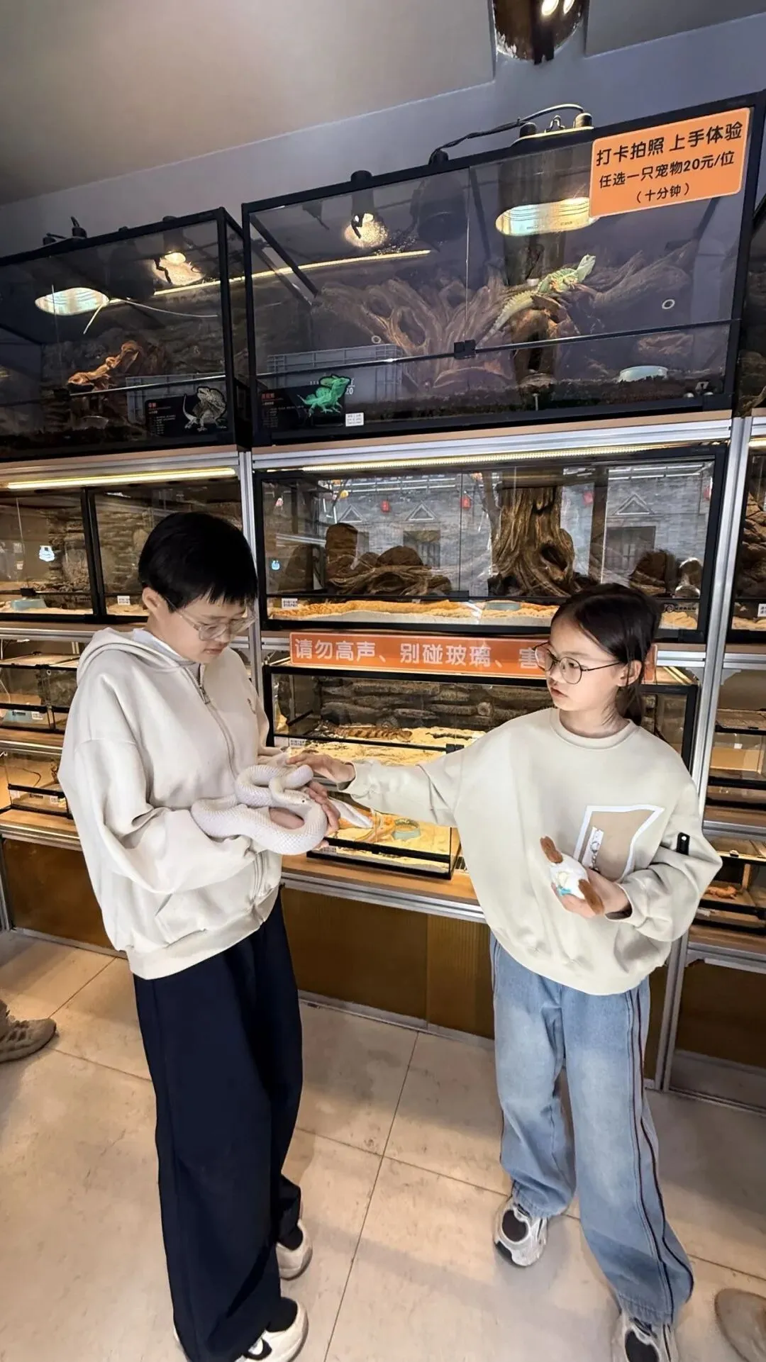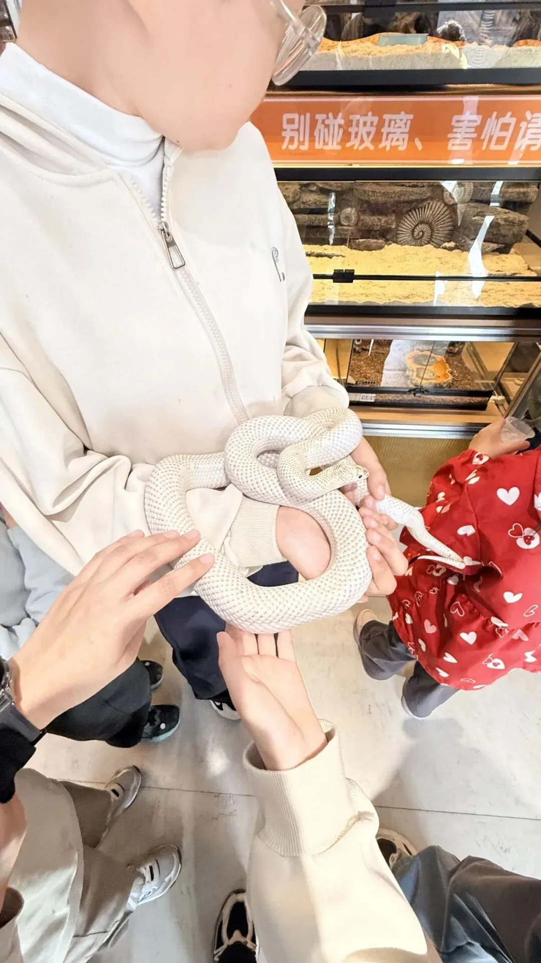 溜达了一圈,吃了吃,逛了逛五元店,满足了小朋友们的购物欲,然后就是特意去爬宠店摸摸蛇,满足一下兜兜的猎奇心。