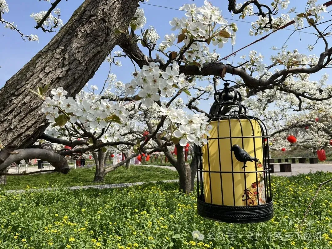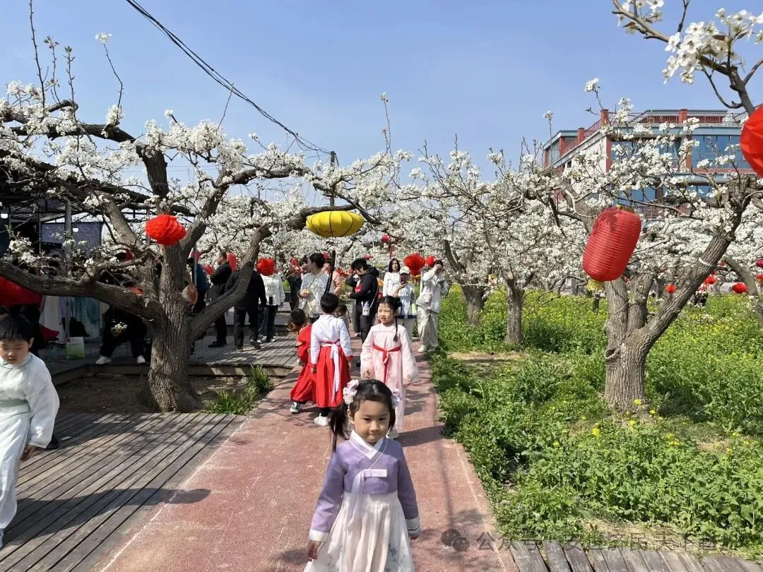 花海深处,悠扬的戏曲穿过梨花的缝隙袅袅飘来,非遗表演的锣鼓声惊起了枝头的雀鸟。那或婉转或高亢的旋律,在花枝间缭绕回荡,与簌簌的花落声交织成春日里最动人的乐章。
