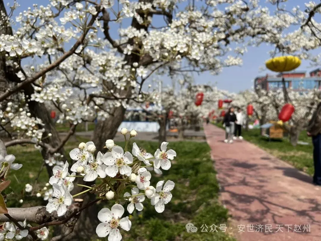 春日里,在赵县二十五万亩梨园,放眼望去,不见边际的梨花汇聚成一片浩瀚的香雪海。