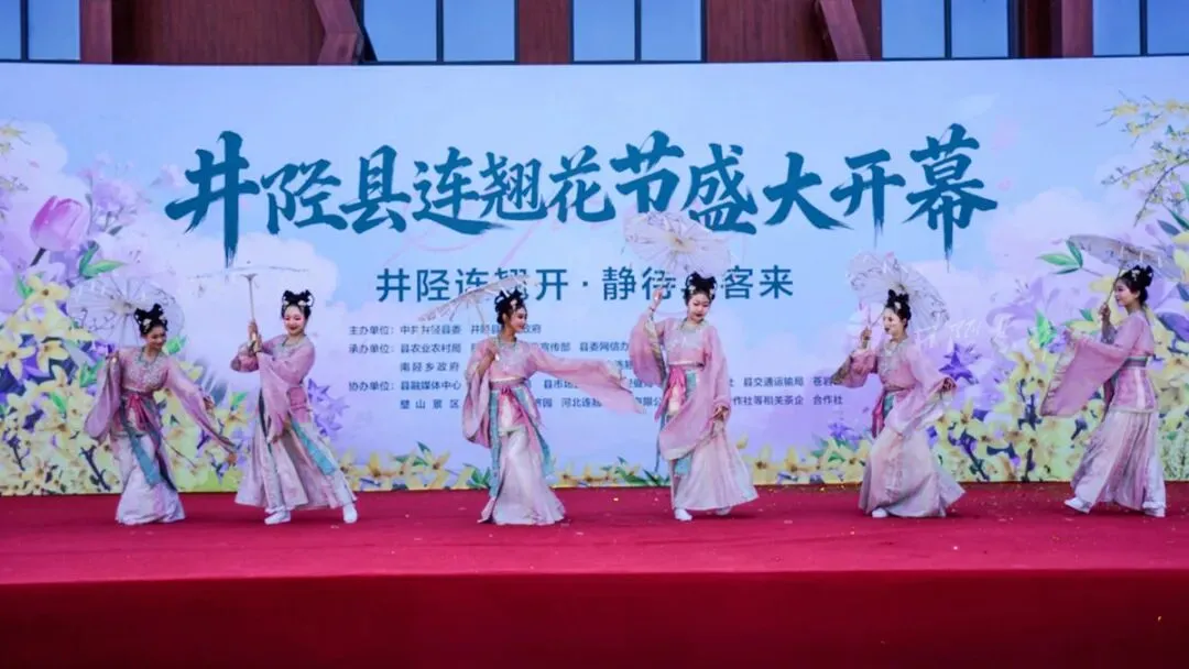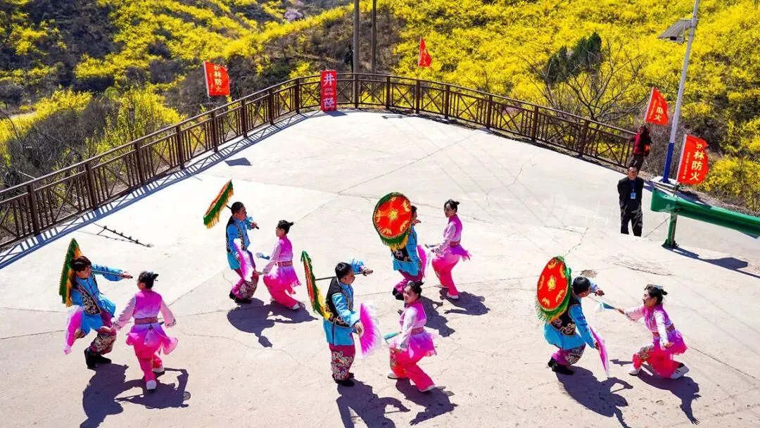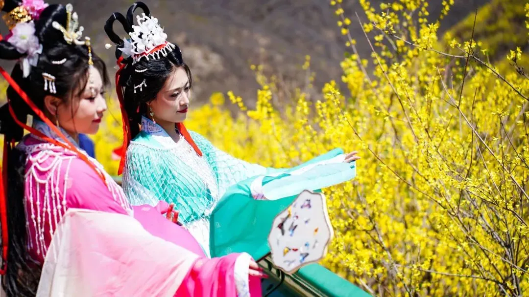 主会场洞阳坡上,漫山金黄花海与苍岩山“桥殿飞虹”的千古奇观交相辉映,主播们驻足花海实时直播,将太行春日盛景传递至远方;古筝演奏、汉服展演、井陉拉花等非遗节目接连上演,让游客在赏花踏青之余,沉浸式感受当地深厚的文化底蕴,生动彰显出文旅深度融合的显著成效。