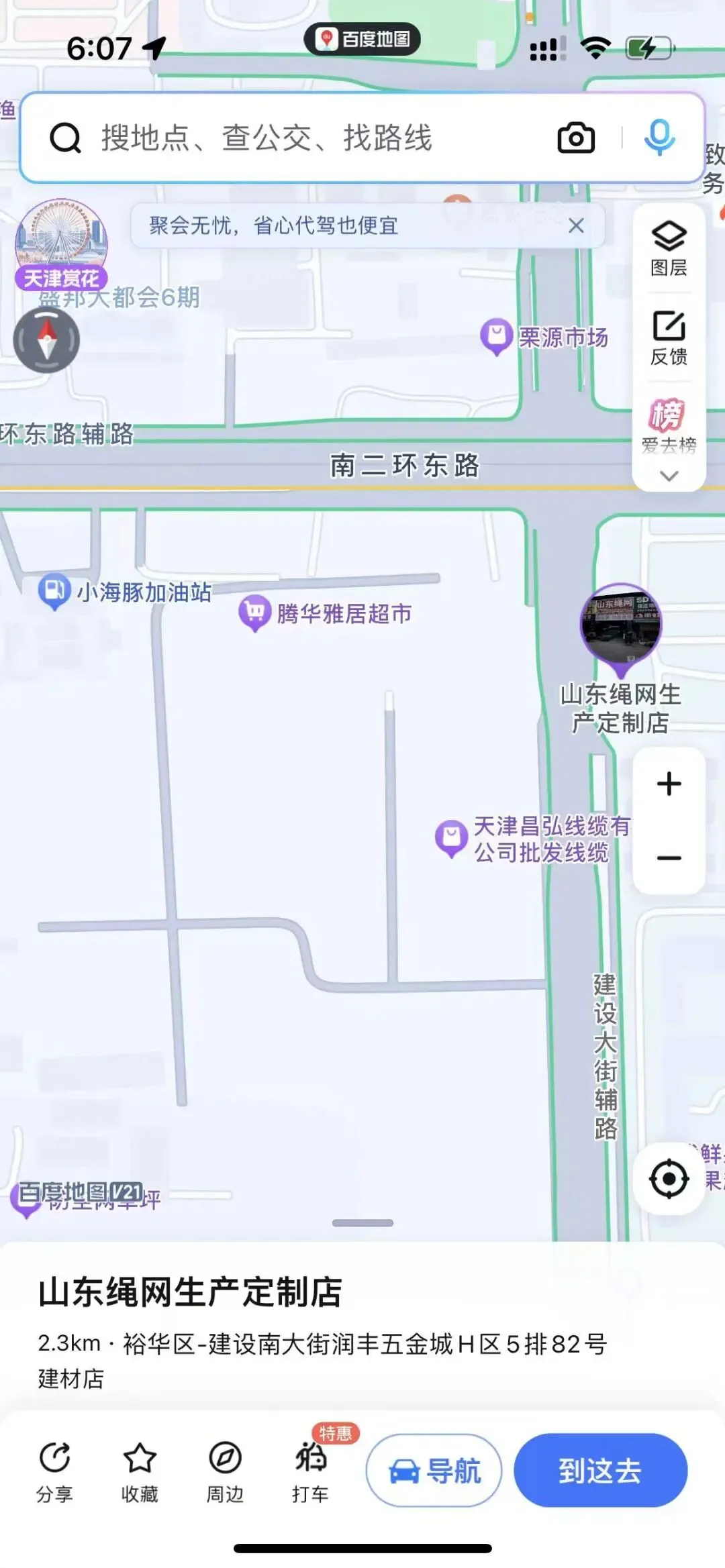 导航南二环与建设大街交汇东南角,或下图“山东绳网生产定制店”之类的都可以,到那边就能找到