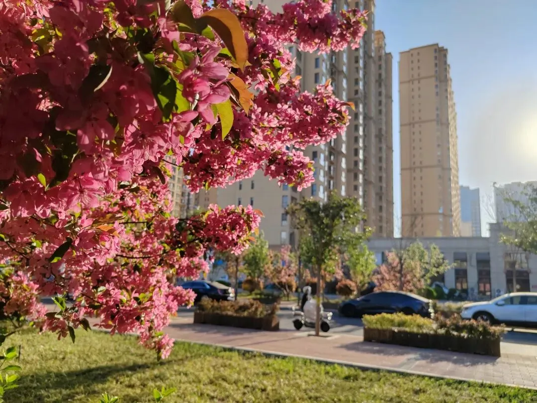 搬来这里近两年,因回山东老家小住近一年,竟错过了它一整个春天。近日春风渐暖,各种花争奇斗艳,出来活动的老人、孩子渐渐了起来。