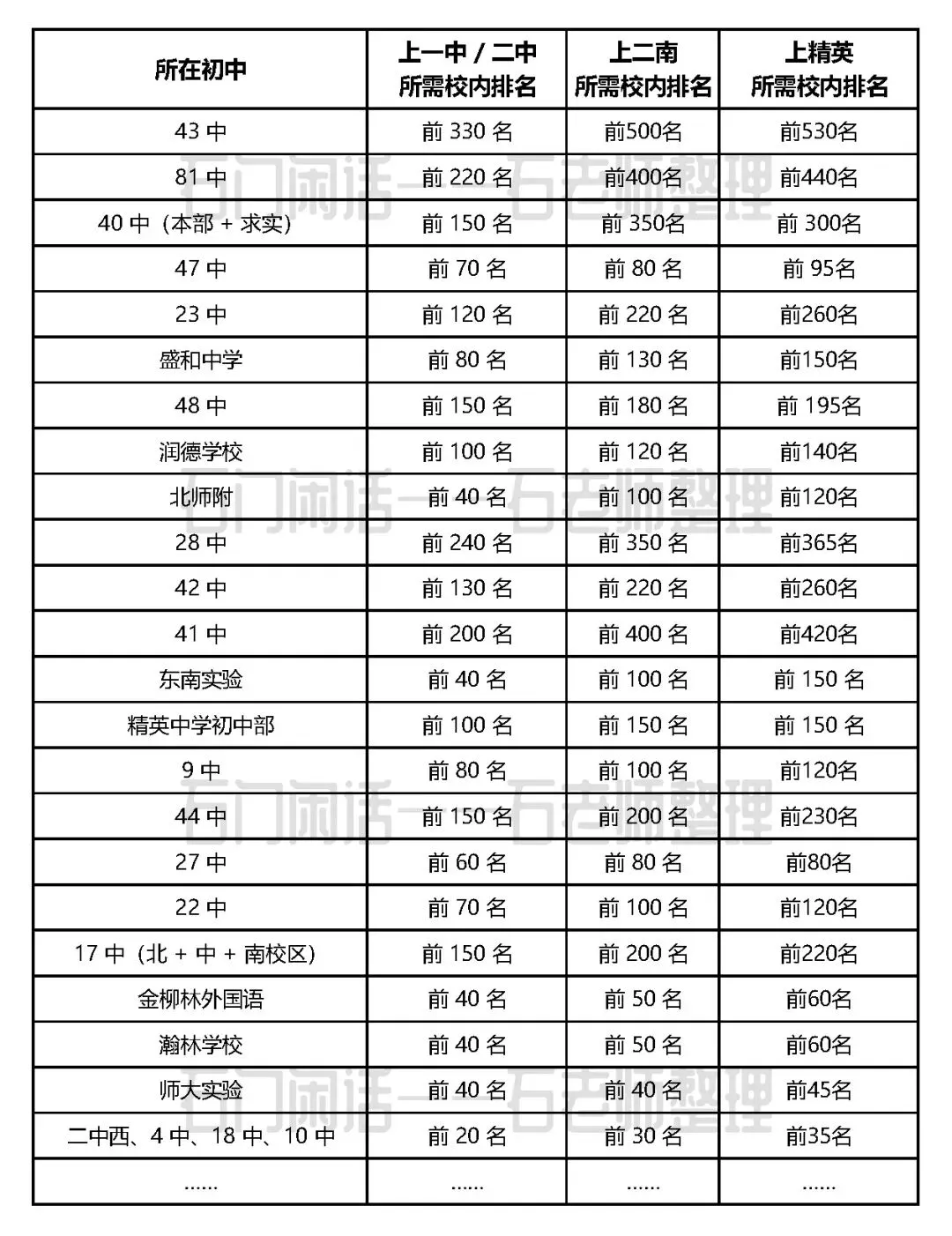 今天,石老师就来谈谈孩子在学校排多少名,才能上石家庄最好的“四大高中”——一中、二中、二南、精英。