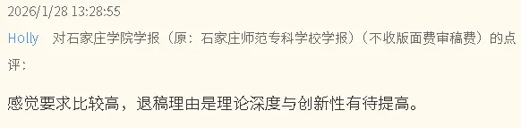即使被退稿,作者也能获得有价值的反馈。多位作者反馈:“退稿有回复”“有2句退稿意见,一句肯定,一句否定”。这与其他期刊“无理由退稿”形成鲜明对比,有助于作者改进论文质量。