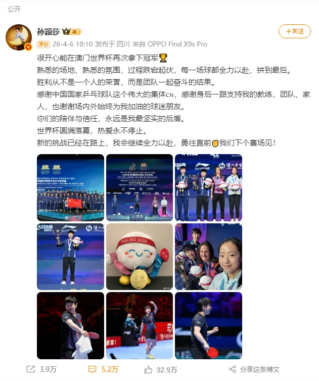 在微博发文总结澳门世界杯