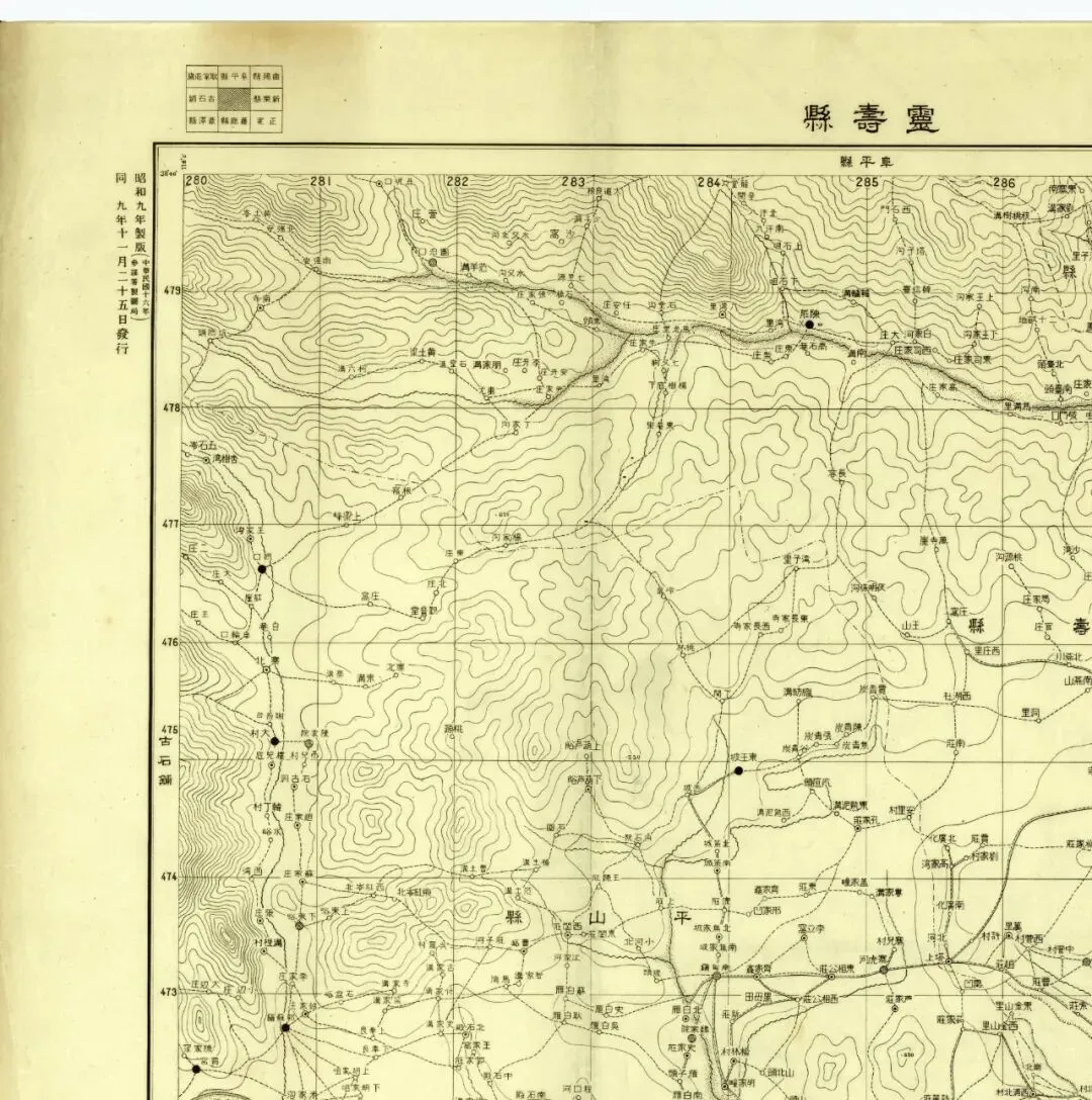 而《灵寿县》为1934年制版,1934年11月发行,翻印自1927年中国地图,日本人没有进行实测。
