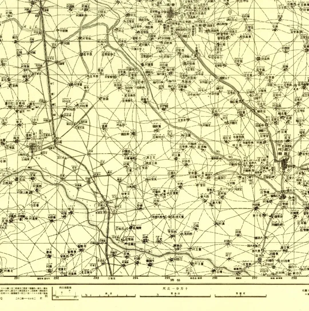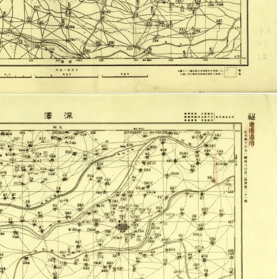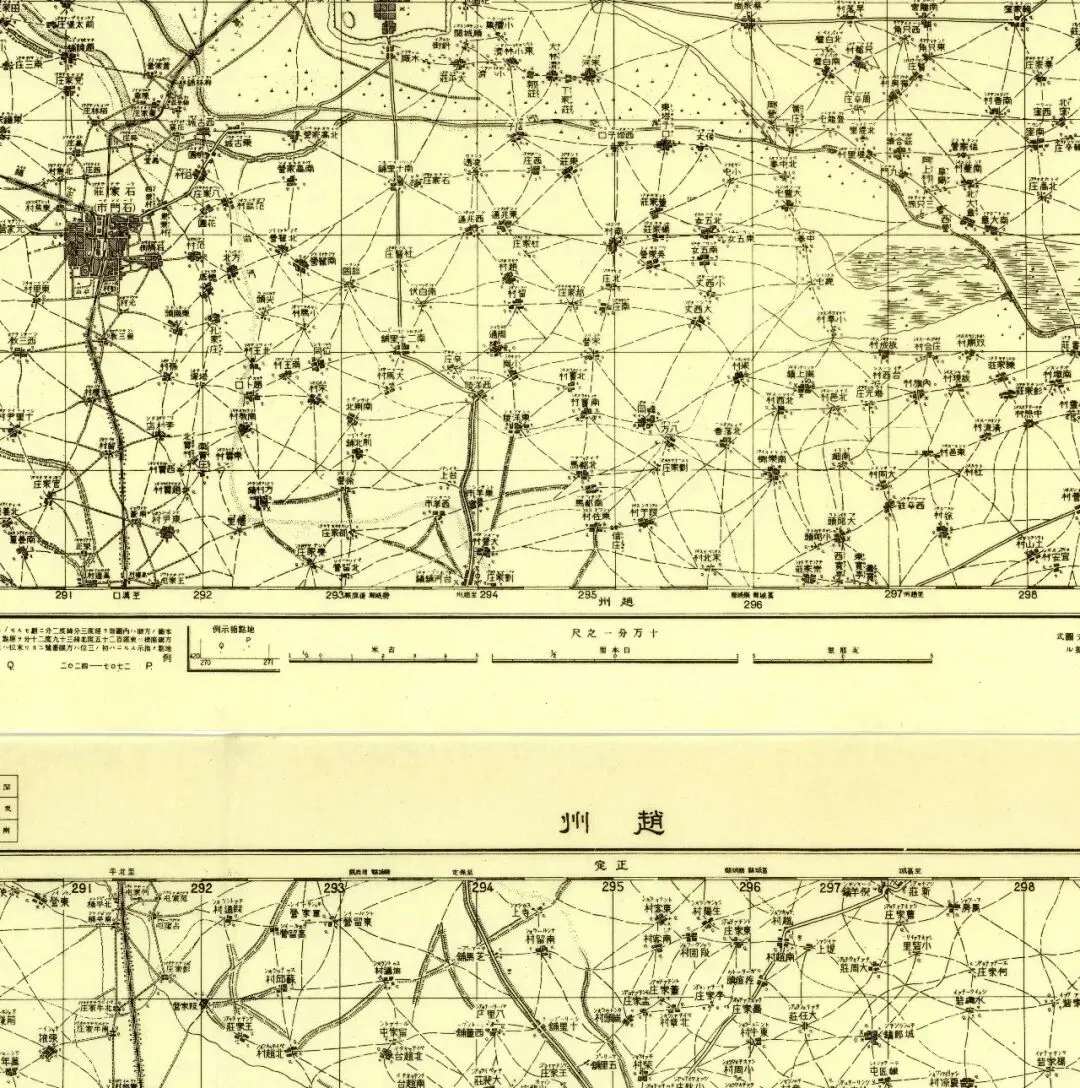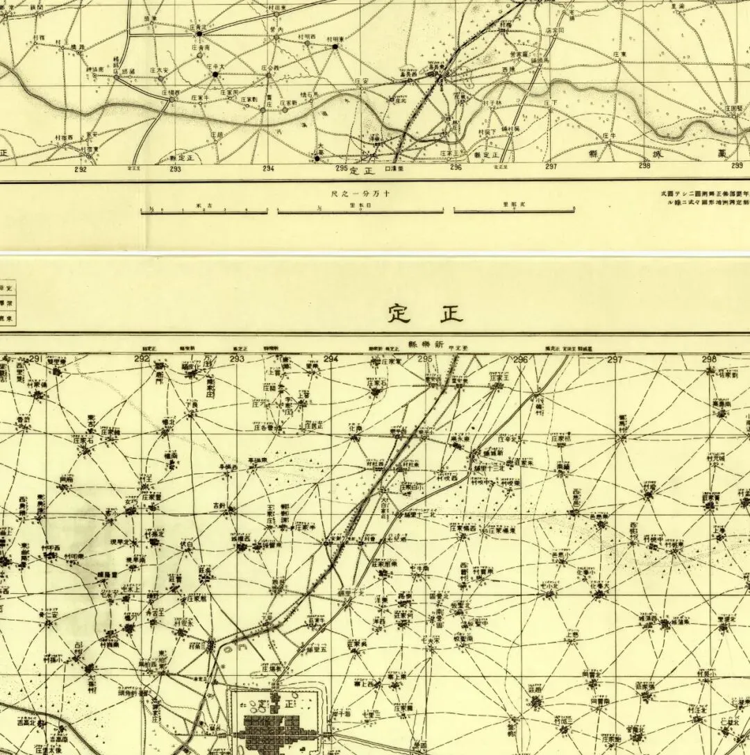 遗憾的是笔者没有机会见到此书,也无从得知石家庄一带是否有更大比例尺的侵华日军地图,故而从略,只用该比例尺拼接。