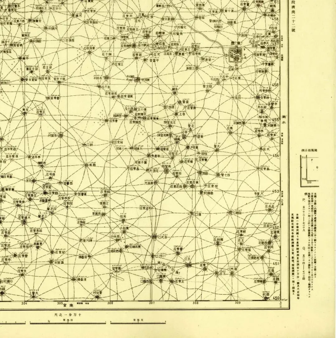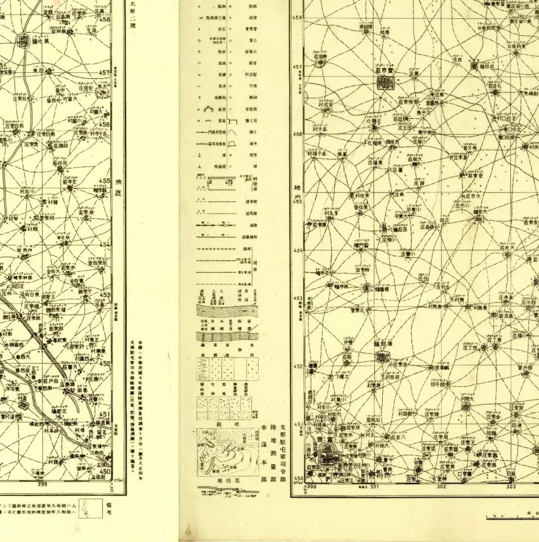而“太原某号”“北平某号”,是对图幅的代表性中心城市进一步划分,划分标准基于当时日本人的地图体系和城市重要程度。除了太原,北平,还有代州和济南。
