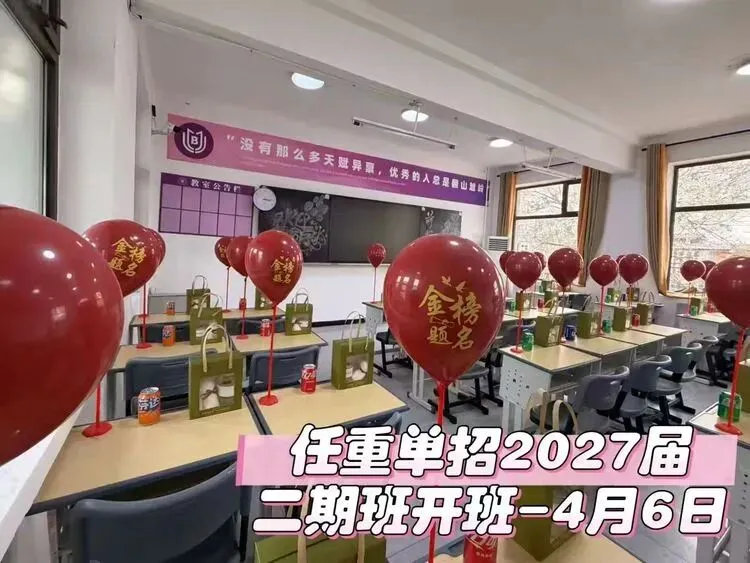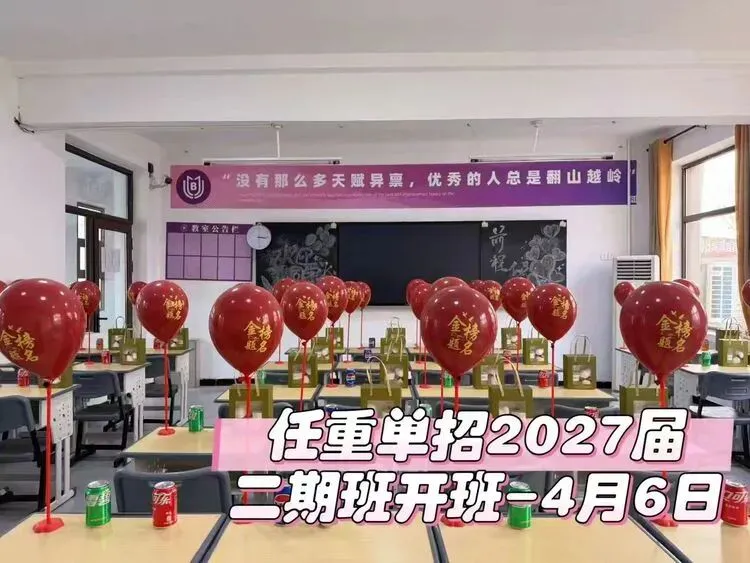 教室是学习的核心场所。学校的单招班级教室布置富有氛围感,通过横幅和气球等元素营造积极向上的学习氛围。横幅上的文字传递出鼓励学生坚持努力的信念,气球装饰则增添了轻松而庄重的开班氛围,让学生在进入教室时就能感受到专注的学习气场。学生们在这样的环境中专注伏案学习,形成了良好的课堂氛围。