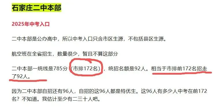 2025年,石家庄二中一统线为785分,一分一档表为172名,包揽了石家庄中考学生的绝对头部!