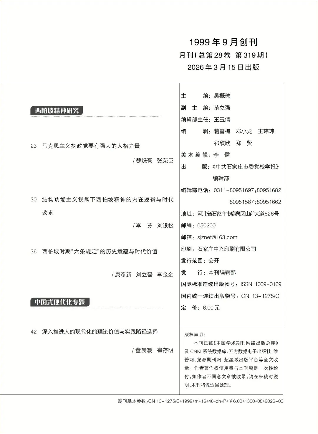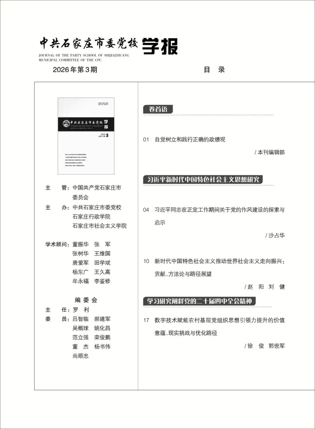 《中共石家庄市委党校学报》2026年(28卷)第3期目录
