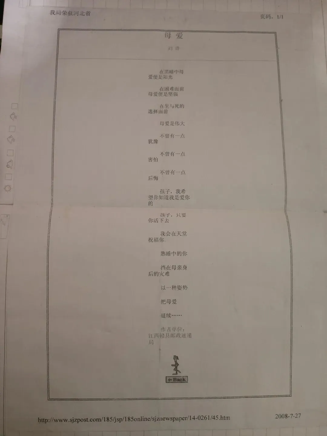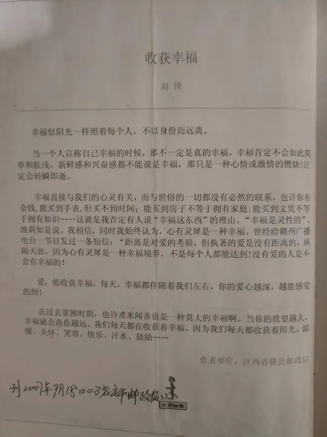 刘锋,笔名风侠。赣县茅店人,江西省作协会员,赣州市作协常务理事。作品散见《散文百家》《赣南日报》《赣州晚报》《江西邮政报》《诗刊》《今朝》等报刊。