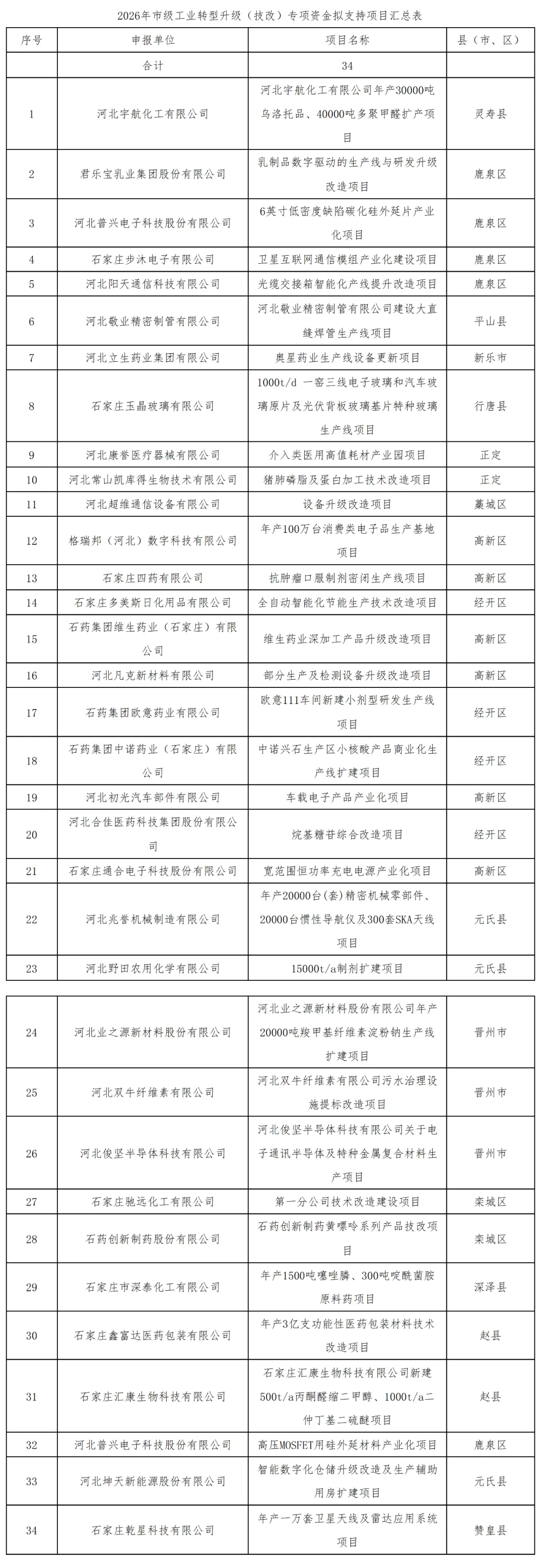 2026年市级工业转型升级(技改)专项资金项目公示