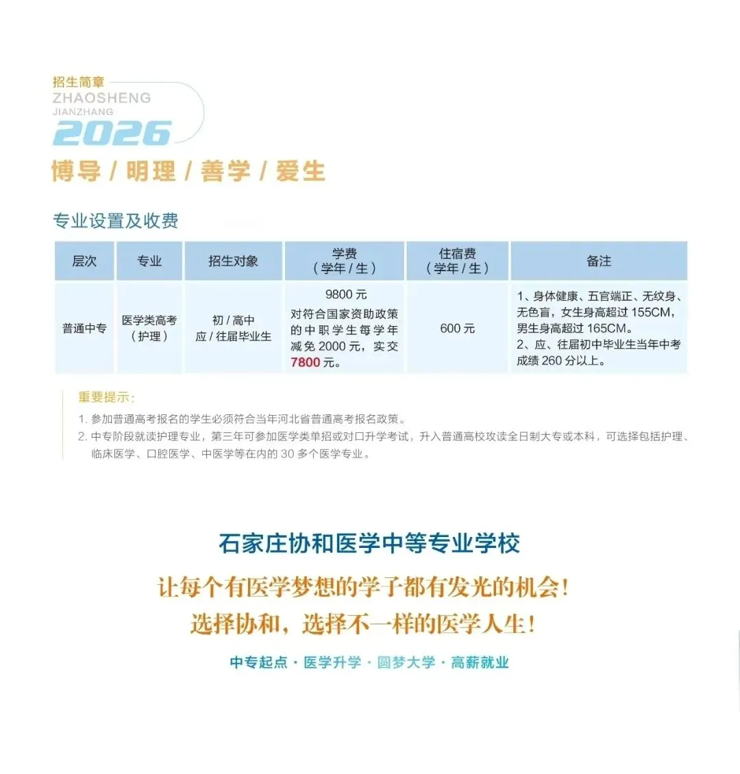中职招生|石家庄协和医学中等专业学校2026年招生指南