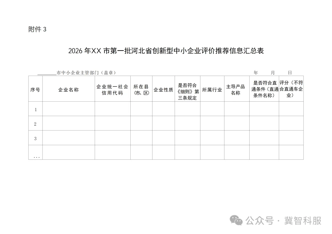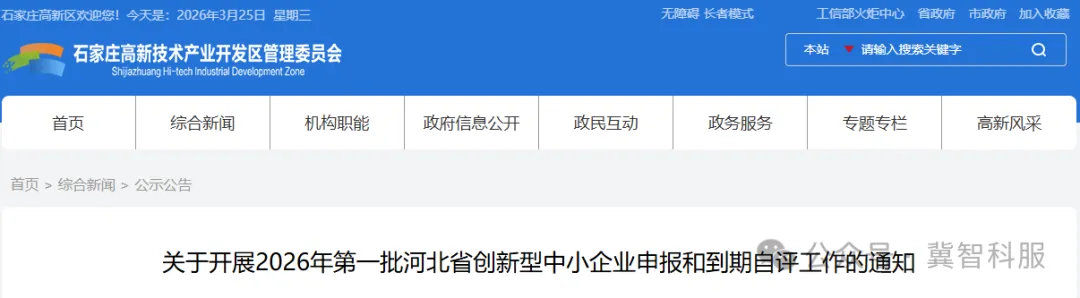 根据河北省工业和信息化厅《关于开展2026年第一批河北省创新型中小企业申报和到期自评工作的通知》要求,现将有关事项通知如下:
