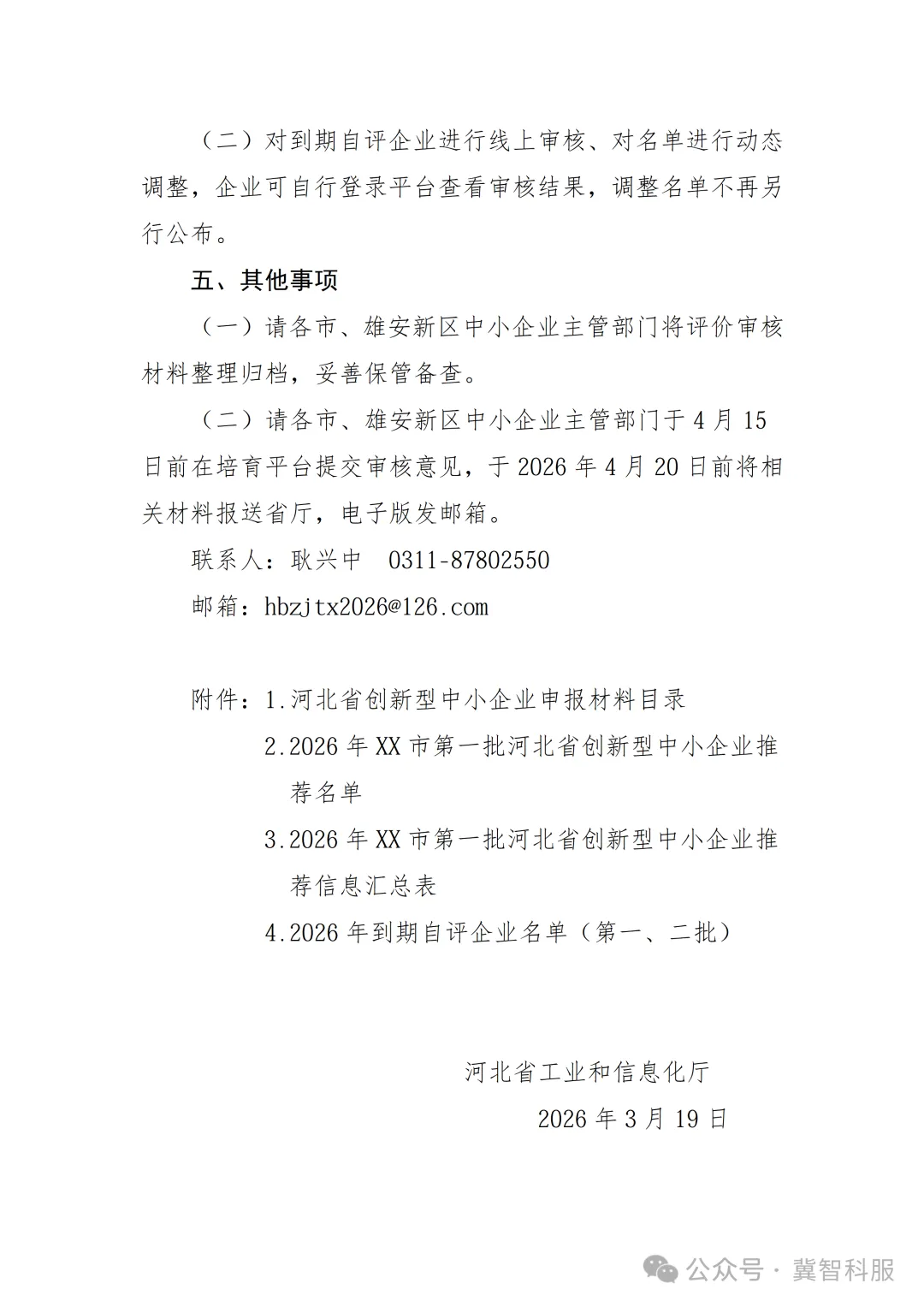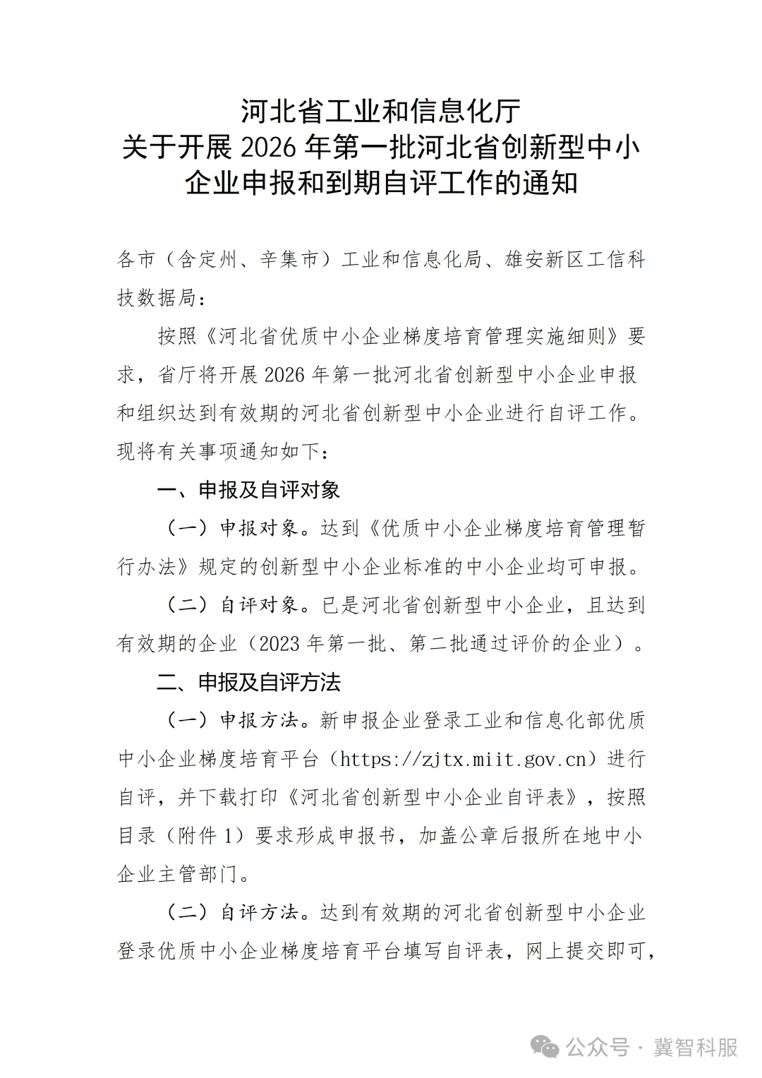 附件1.河北省工业和信息化厅《关于开展2026年第一批河北省创新型中小企业申报和到期自评工作的通知》