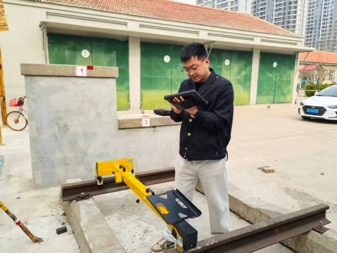获鹿房建检修车间青锋技术组开展限界测量实操学习,小组搭建铁轨教学模型,模拟现场工况,练习限界测量,熟练掌握仪器使用方法,并学习全站仪应急测量,有效提升青年职工实操与判断能力。(金茜)