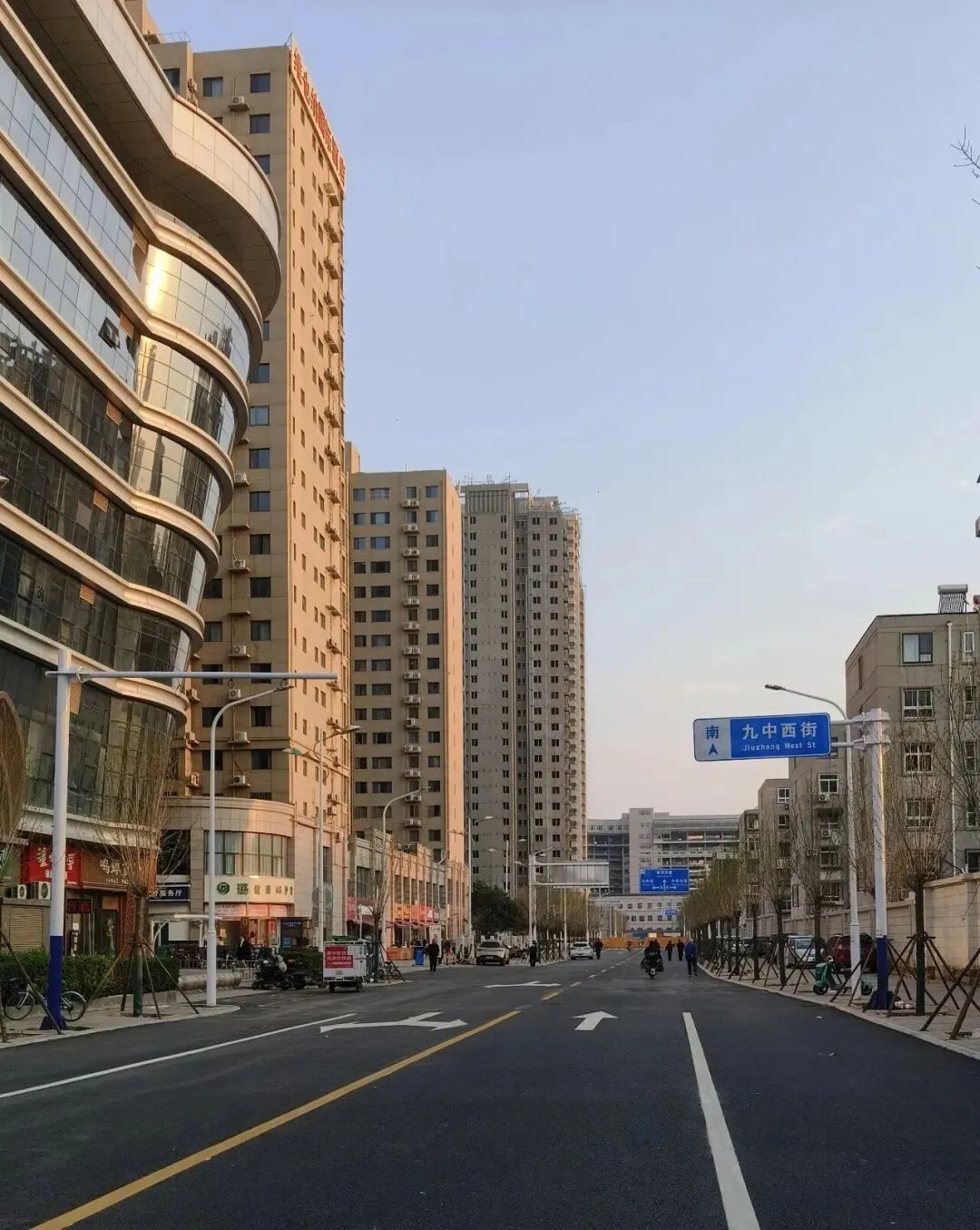 今天从新华区市庄路经过,看到省二院北侧、江西大厦西侧新修了一条南北走向的道路,名为“九中西街”,路面已经铺设完毕,道路标示牌也已经安好,不过道路尽头暂时还立着围挡,但估计过不了多久就会正式开放通车。