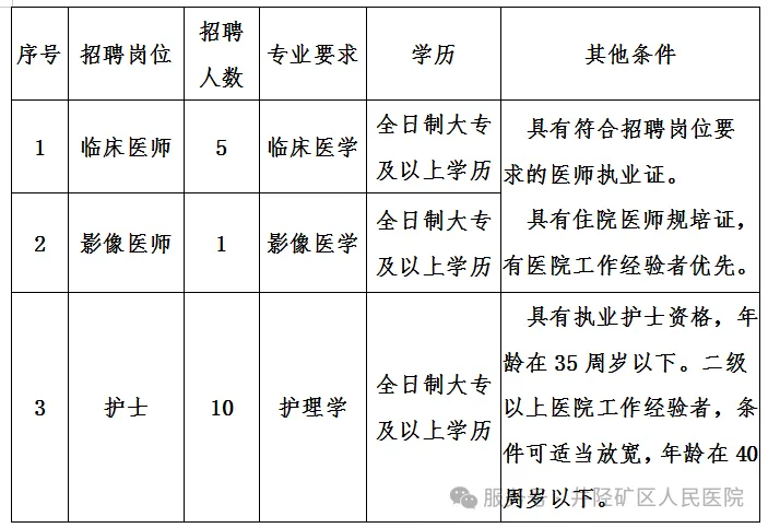 矿区人民医院招聘公告