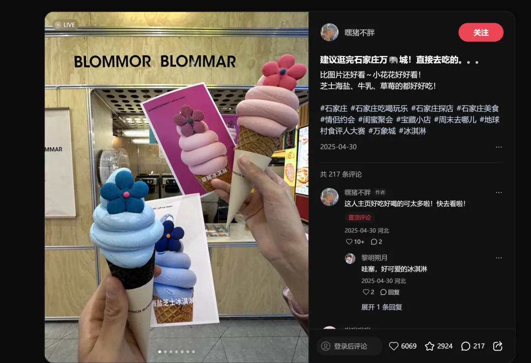 标题只说了一句"建议逛完万象城直接去吃",但这条内容精准踩中了石家庄年轻客群的核心动线——商圈+甜品的"逛吃"组合。万象城是石家庄目前人气最高的商业体之一,把甜品店和商圈动线绑定,本质上是在借"逛街"这个高频场景做自然引流。