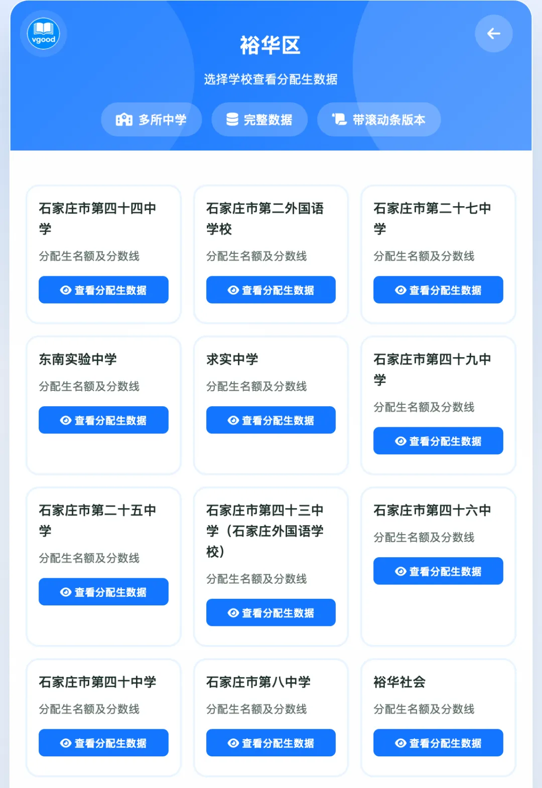 #石家庄裕华区初中分配生数据
