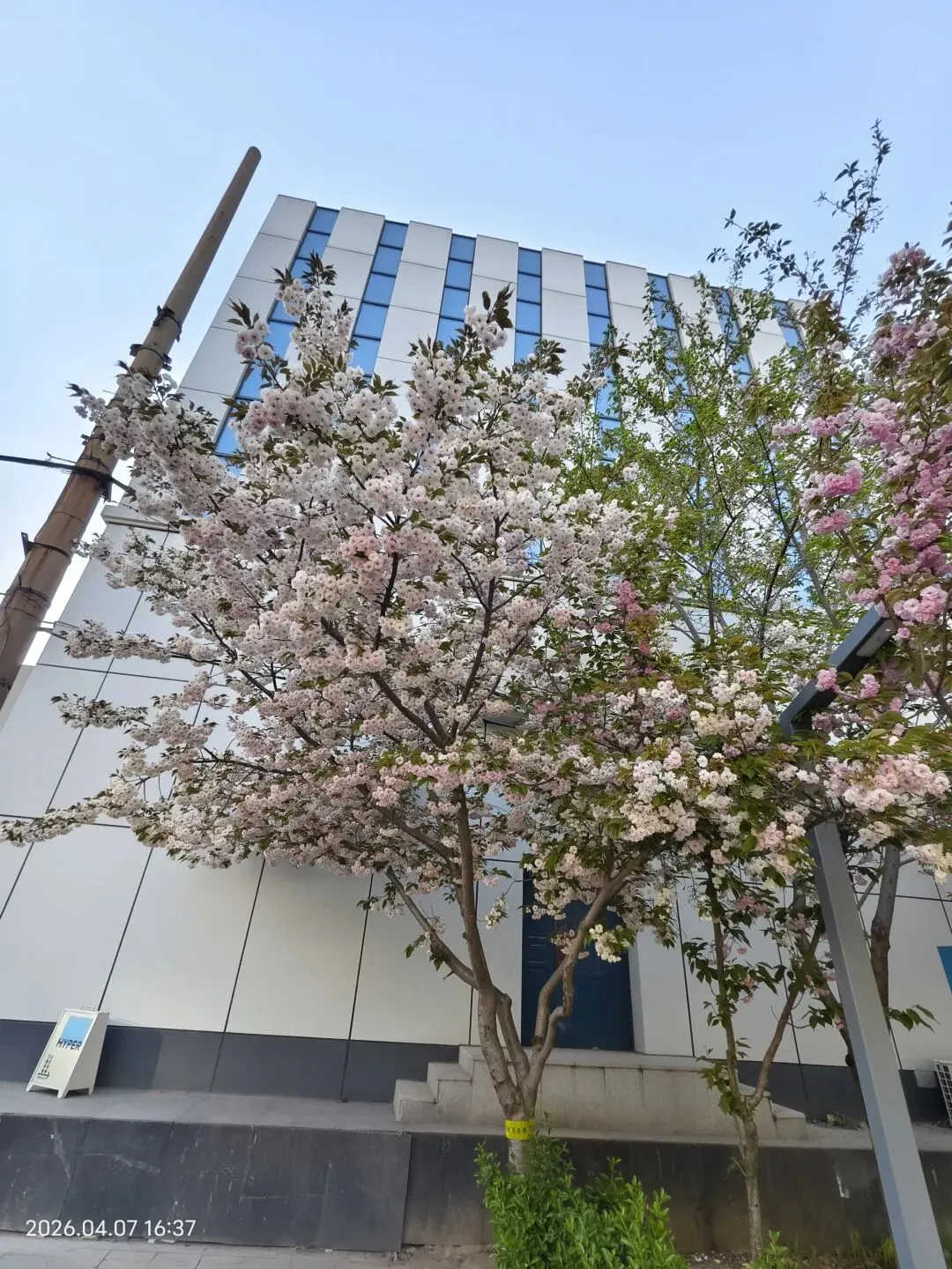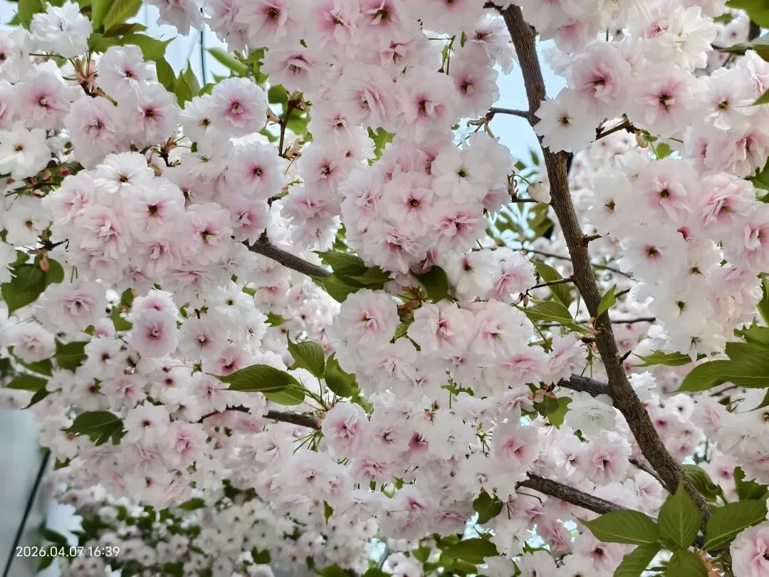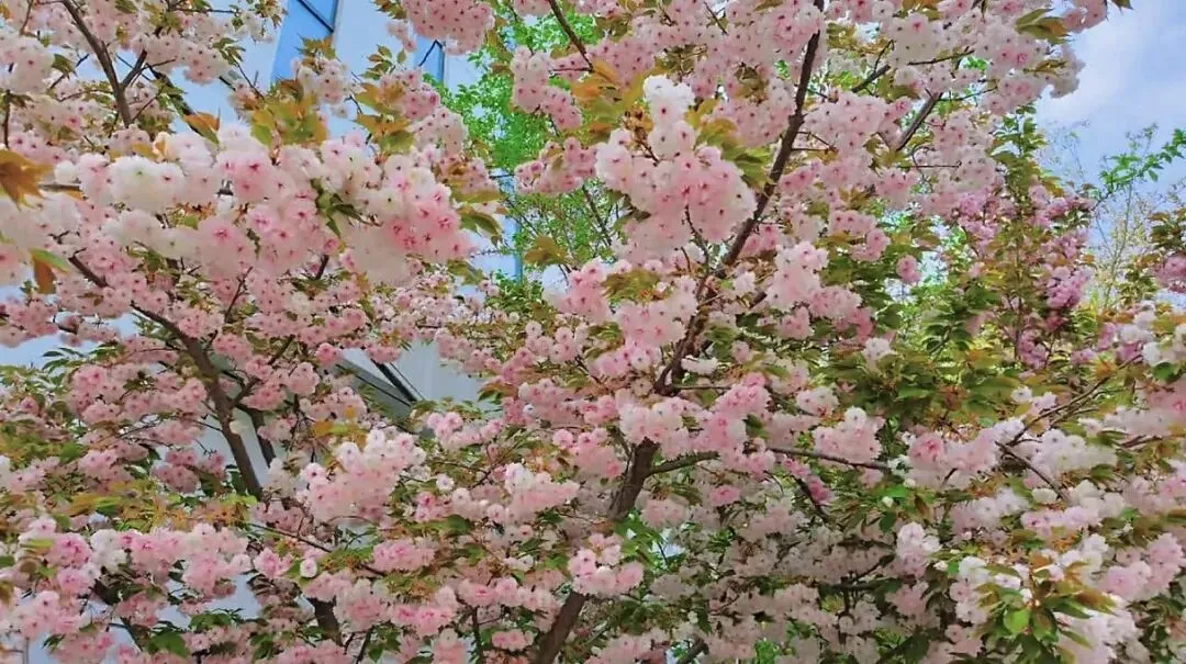 这树樱花和其他樱花不同,层层叠叠,饱满惊艳,美得细腻又层次分明。