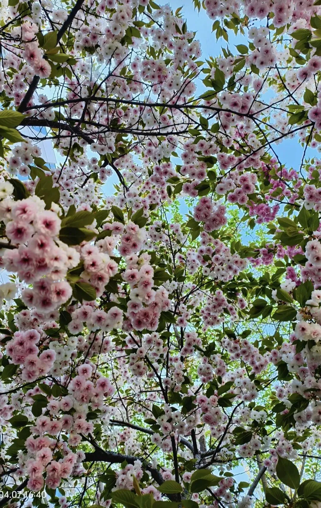 粉白相间的繁花挂满枝头,这是前年4月12日拍的。