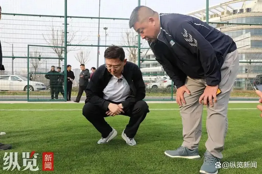孙继海:“(草皮)土上面的高度是刚好的,软硬度也很合适,很舒服。在这样的场地如果踢不好就不能赖场地了,但是得赖鞋。”