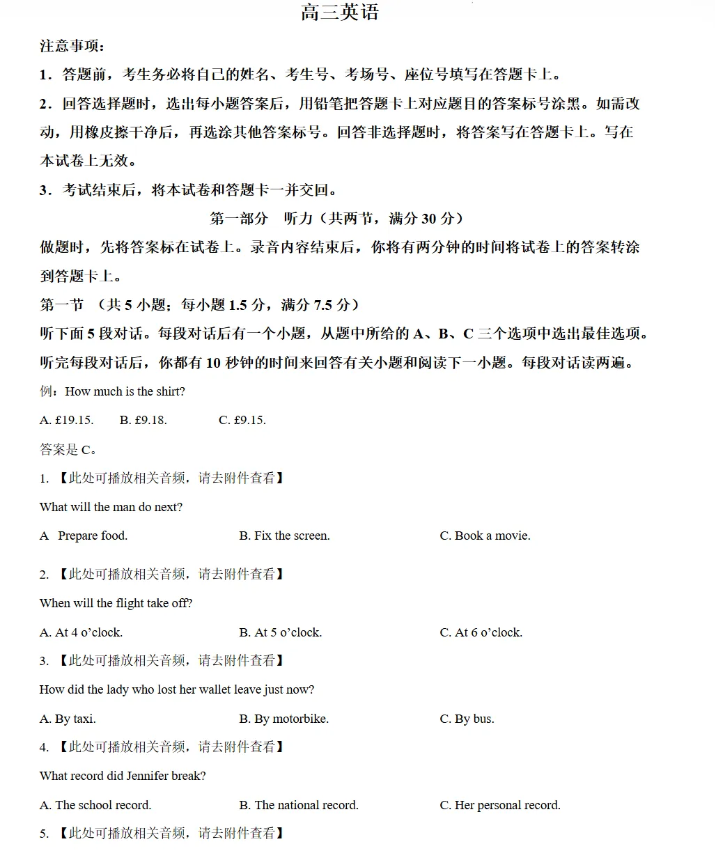 2026届河北石家庄市第二中学等校2025-2026学高三下学期一模英语试题