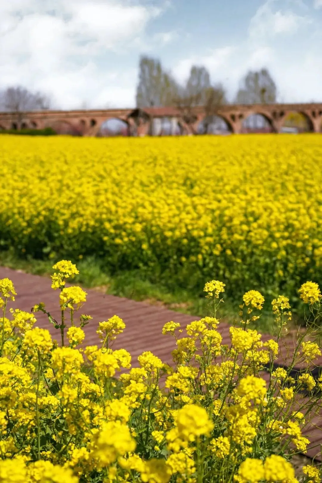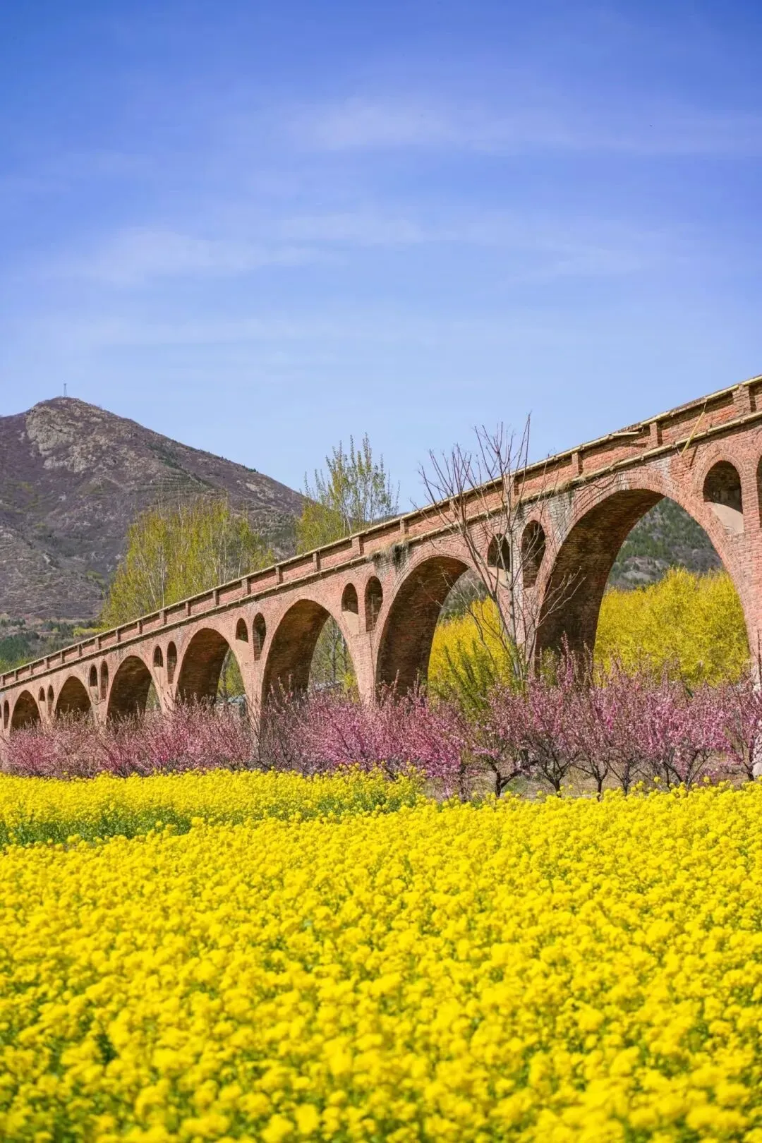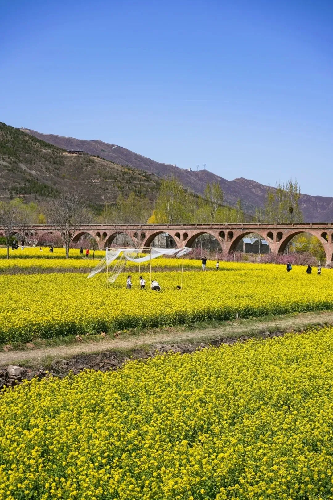 岭底村保存完好的渡槽和渡江扬水站把尘封的记忆从岗南引来,新开的小黄花在暖风里摇曳着旧日情怀,让这片花海有了特殊的故事感。