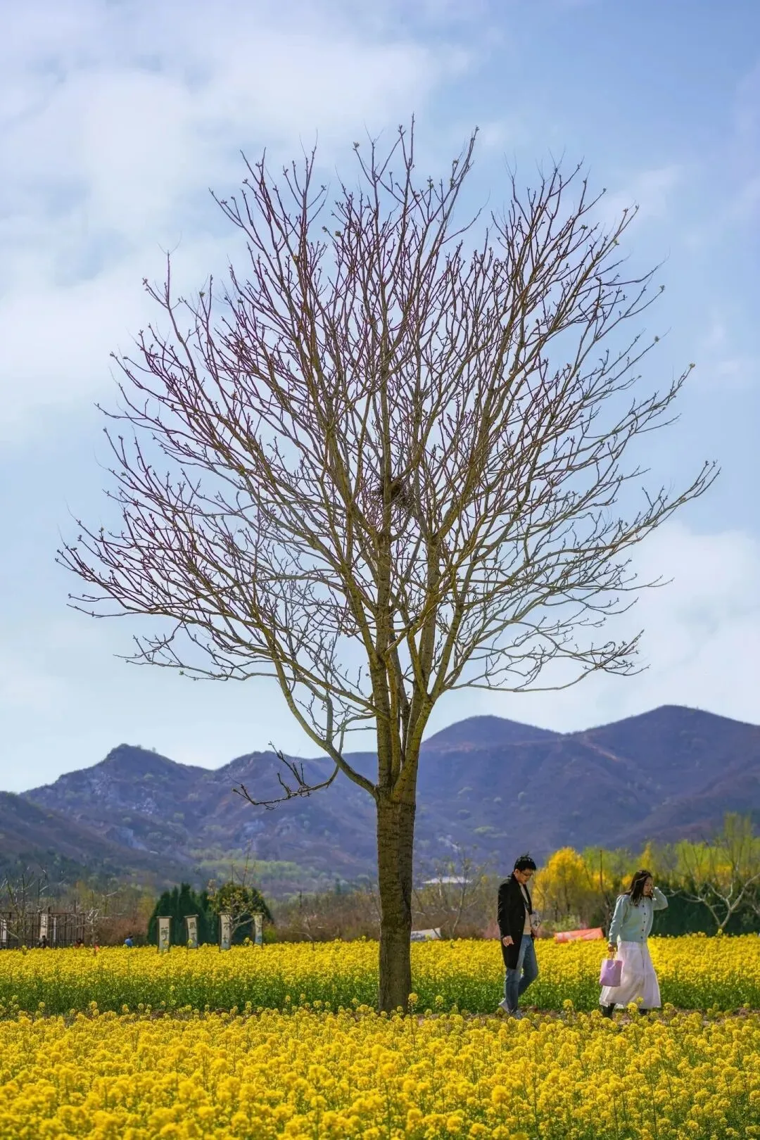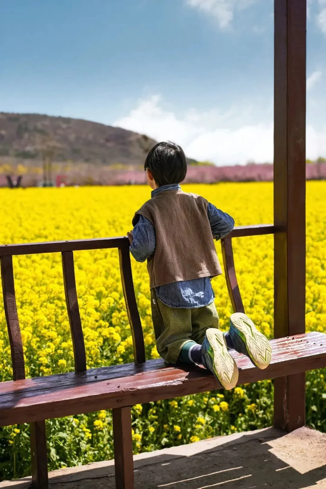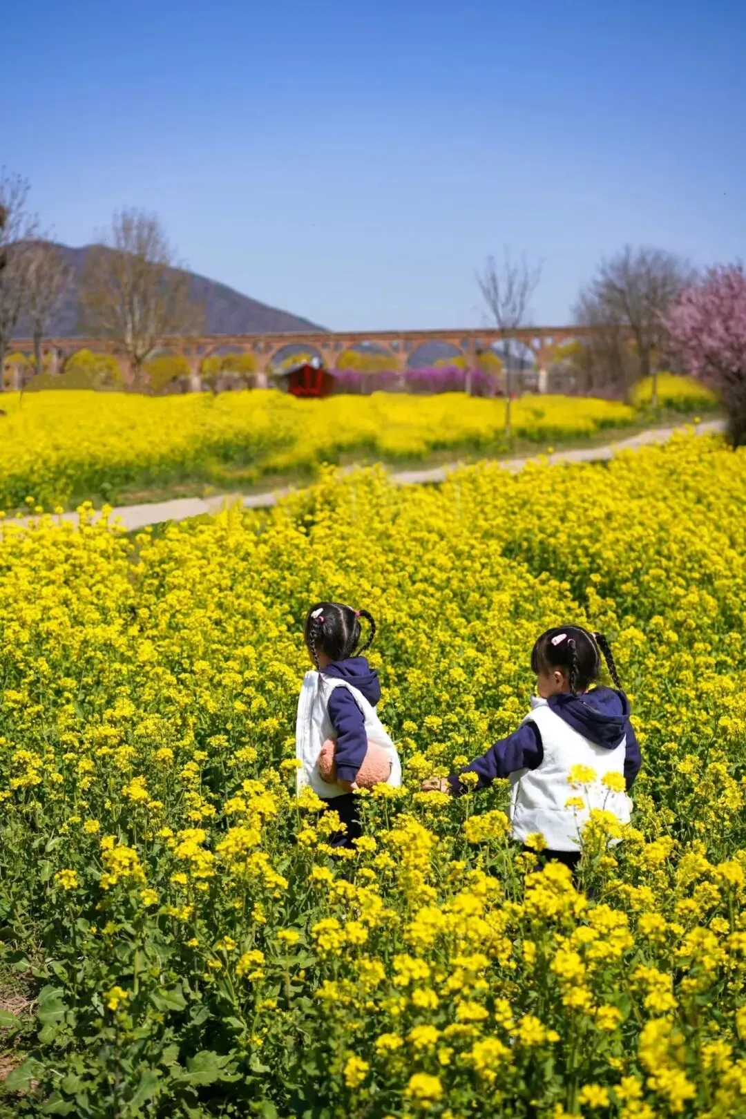 遇到了一对可爱的双胞胎姐妹,在花田里嬉戏如小精灵一般,忍不住偷拍了张背影。上次看油菜花时还不如花高的臭小孩已开始躲避镜头,连哄带骗不肯让正经拍,只能随便抓几张侧影记录下春天。佯装生气的感慨:再生一个妹妹拍她吧…小孩哥:不要,我不要拍照,我也不要妹妹,我就想…要一根烤肠,咱们吃烤肠吧。