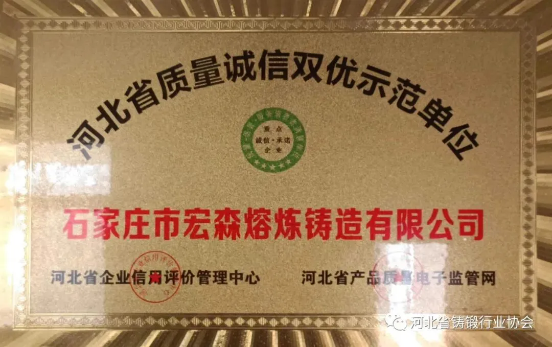 石家庄市宏森熔炼铸造有限公司创建于2002年,注册资金9200万元,位于中国・河北藁城经济开发区。是工信部认定的专业生产优质铸造生铁、球墨铸铁、高纯生铁、精密铸件生产及加工的装备制造企业。中国铸造协会理事单位。中国铸造协会会员单位。中国铸造消失模协会理事单位。河北省铸锻行业协会副会长及理事单位。被评为河北省优秀60强铸造企业、河北省绿色铸造示范企业。通过了ISO9001、IATF16949质量管理体系和ISO45001职业健康安全管理体系、ISO14001环境管理体系认证。已成为行业内知名企业,连年被藁城政府部门评定为“诚信3A级企业”、“先进纳税企业”。2014年荣获省质监局“河北省名牌产品”称号。近几年连续被评为“石家庄市百强企业”,近十几年居兴安镇纳税榜首,年纳税1000多万元以上。