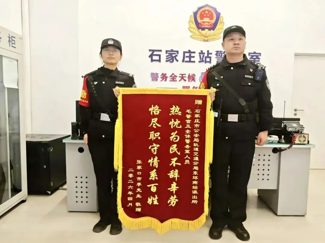 4月4日,石家庄市公安局轨道交通分局新百广场站和石家庄站警务室分别收到了周女士和李先生邮寄来的两面锦旗,对轨道公安帮他们快速找回失物表示感谢。