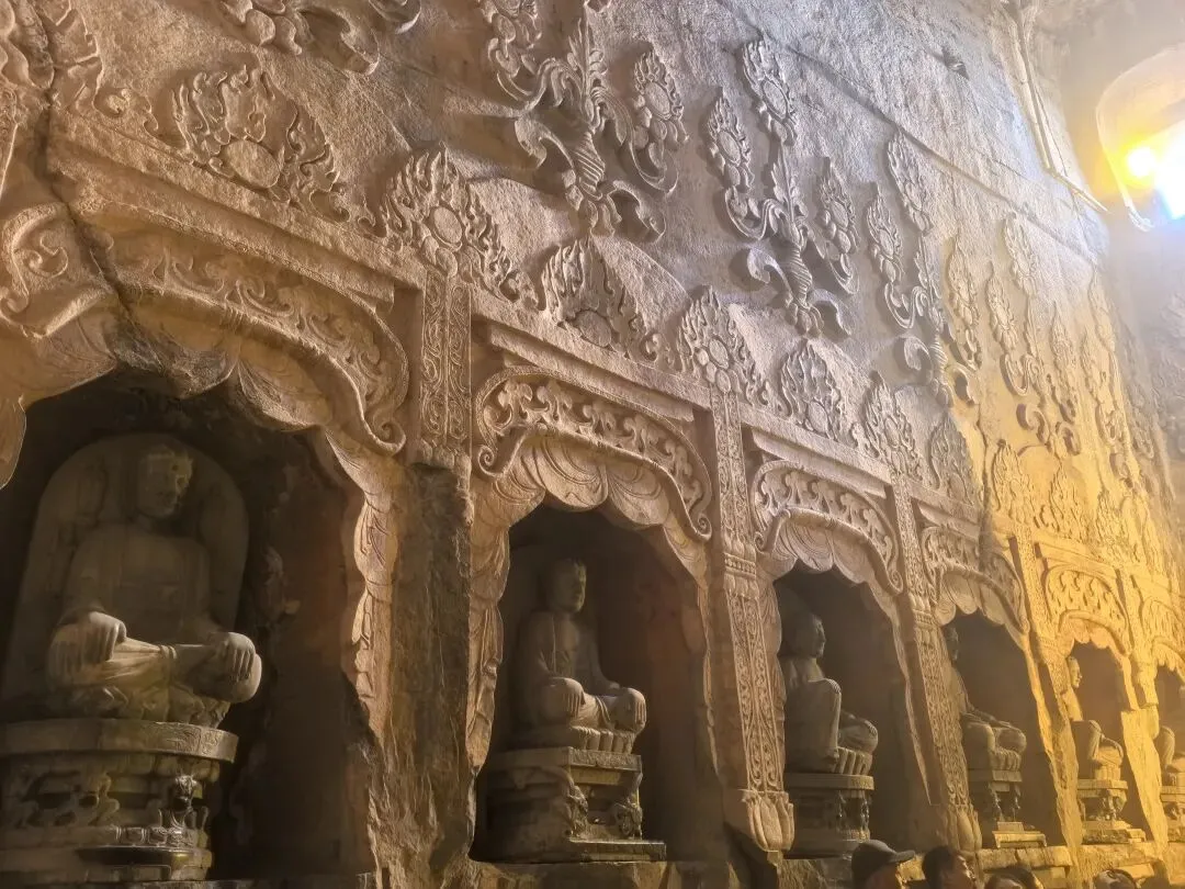 2. 刻经洞(南洞)- 满壁镌刻《维摩诘经》等,由北齐重臣唐邕书写。