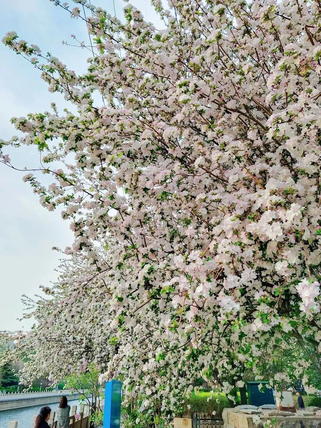 ✅ 火车站西广场:300 余株北美海棠扎堆开,出站就能撞进花海;