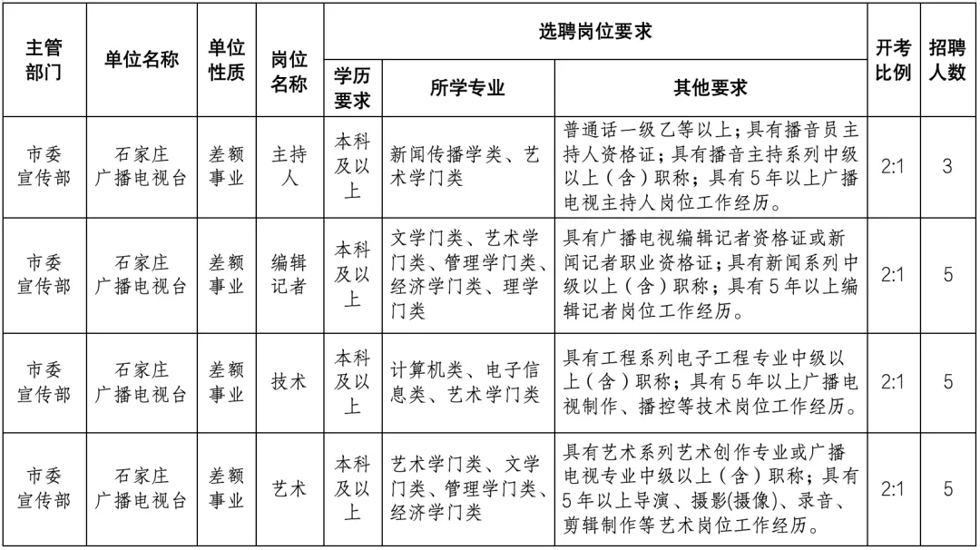 每名考生限报考一个岗位。考生提交报名信息后,由石家庄广播电视台进行网上初审。