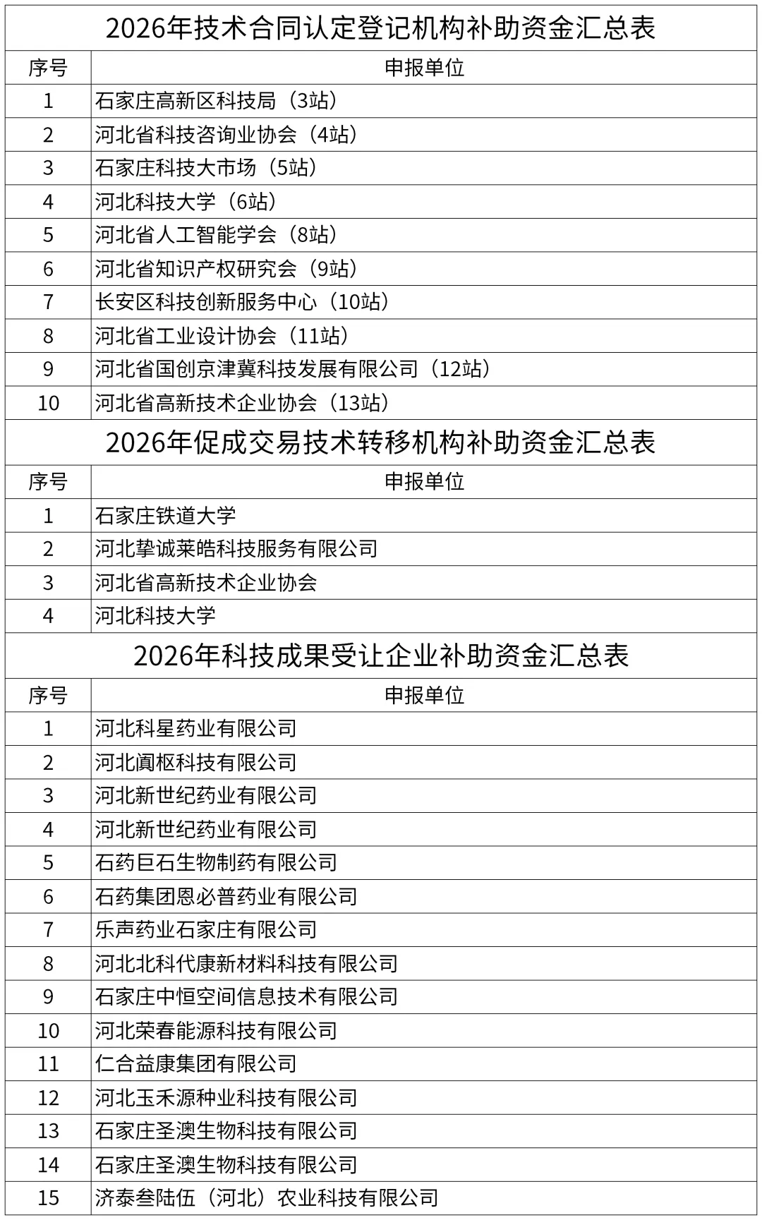 附件:2026年石家庄市技术经纪人补助资金拟补助单位名单